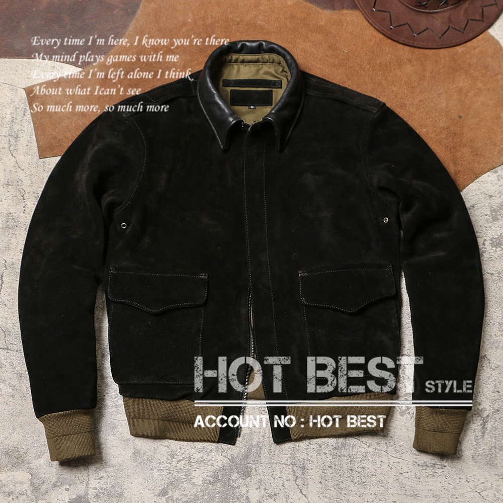1.4mm カウスエード 復刻30's USAF TYPE A-2 フライトジャケット メンズ 革ジャン 染料仕上げ 牛革 Y1538/M