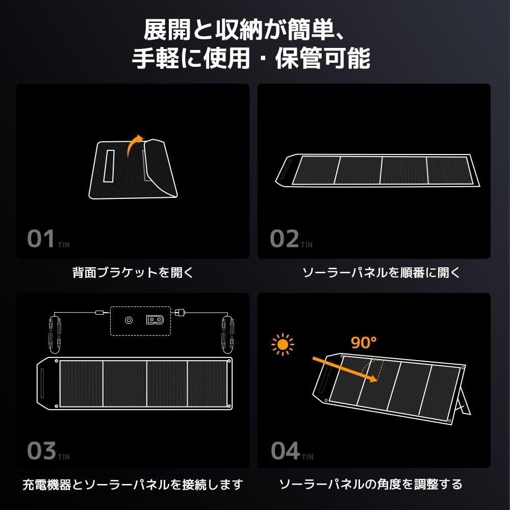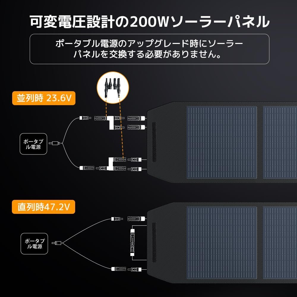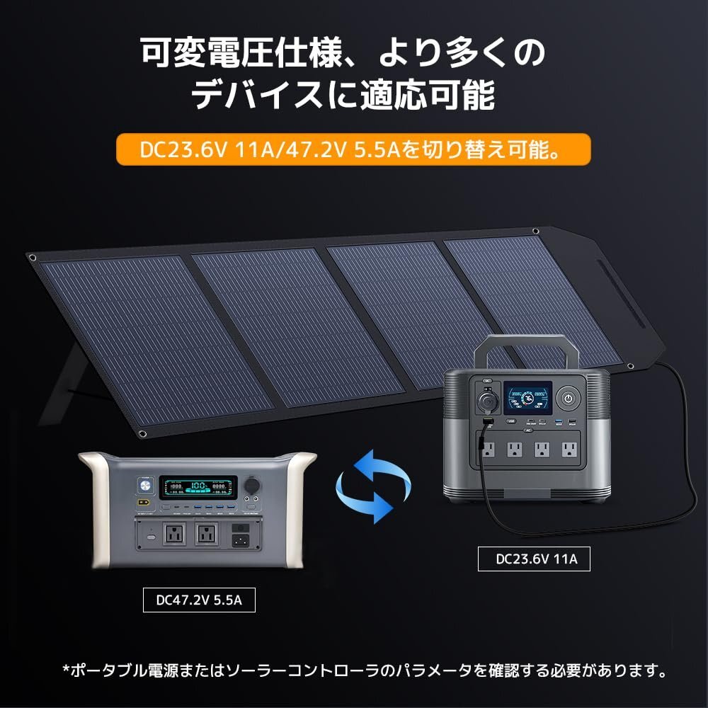 【タイムセール】 DC23.6V/47.2V 折りたたみ 可変電圧仕様 ソーラーパネル 200W 単結晶シリコン ポータブル電源