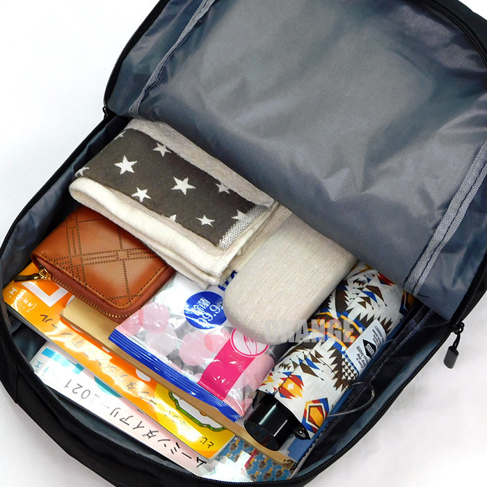 前面ファスナーポケットは使用頻度が高いものの収納に。
