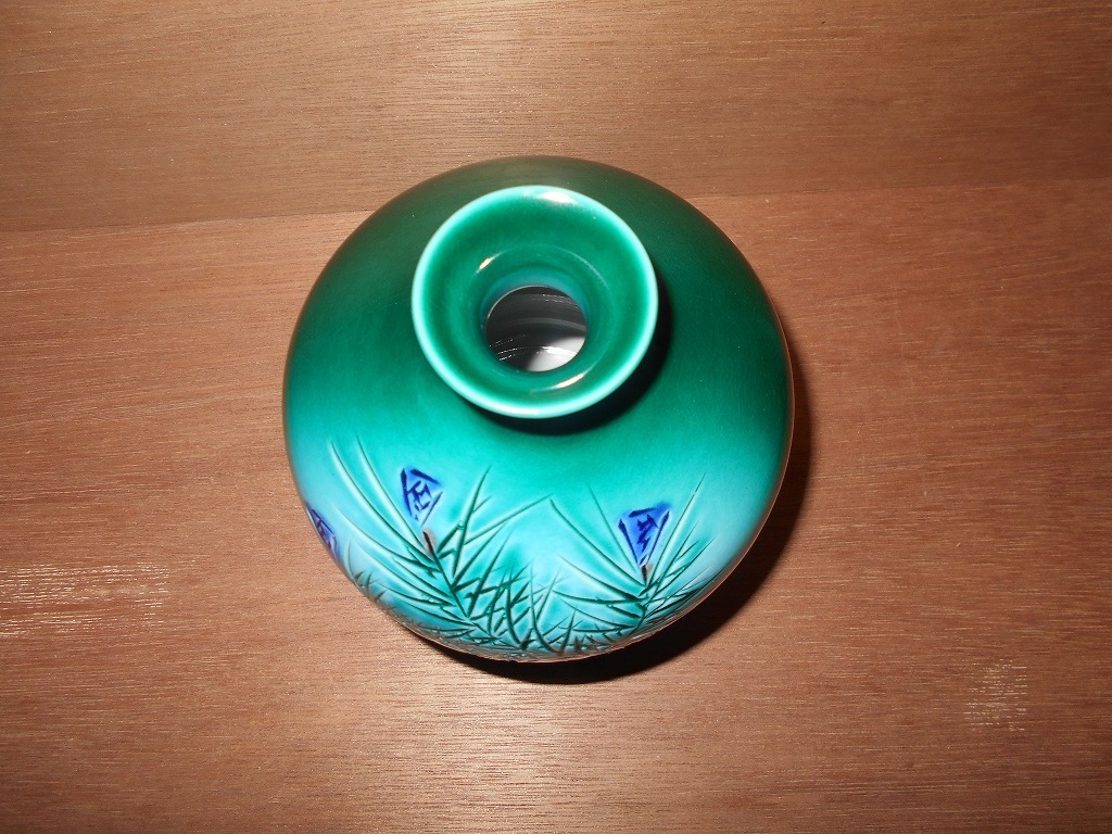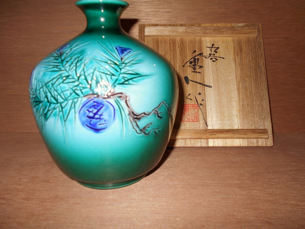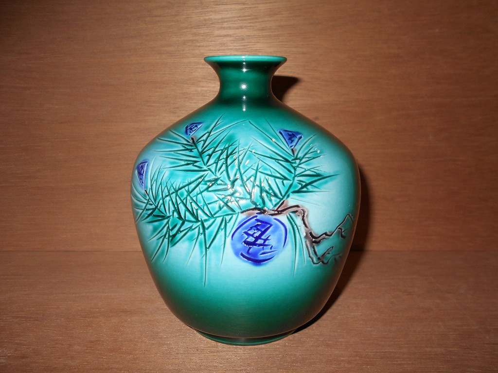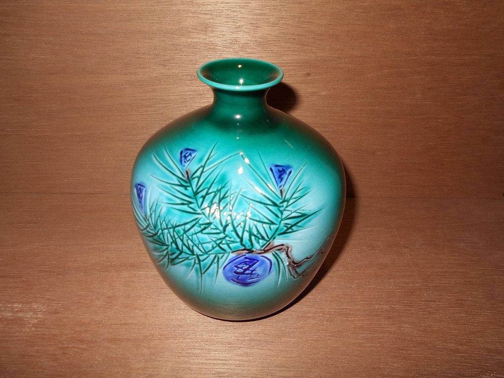 【 九谷焼 未使用 】 九谷焼 彩釉瑞松 華生 重人 : 花器 花生 飾壺 飾瓶 花入 花瓶 九谷 中村重人