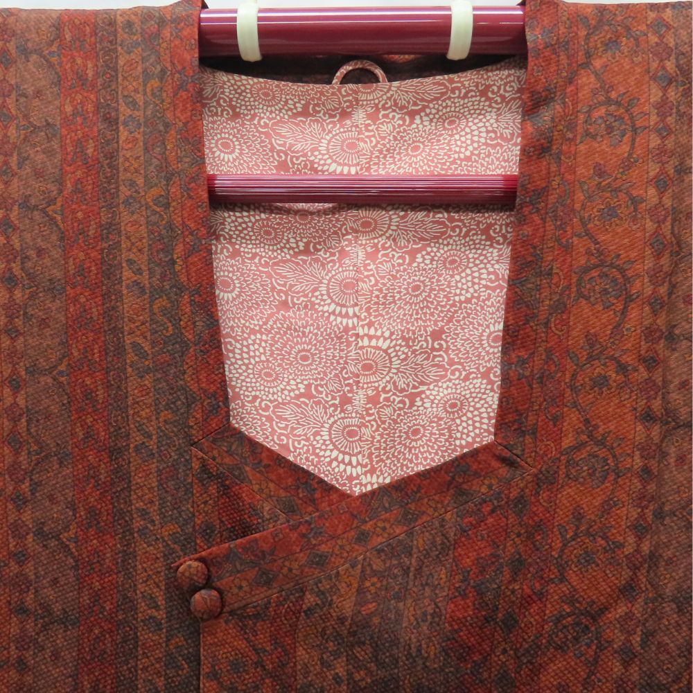 中古 道行・道中 道行コート 正絹 えんじ 草花柄 おしゃれ 和装 呉服 和服 きもの レディース 女性