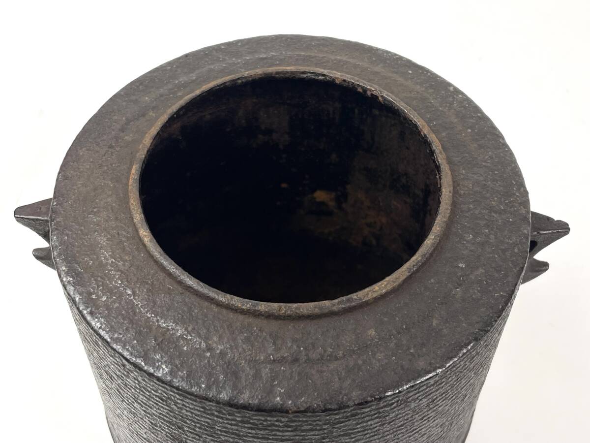 茶釜 糸目地紋 筒釜 中古 現状品 ジャンク 返品不可 茶道具 風炉道具 鉄釜