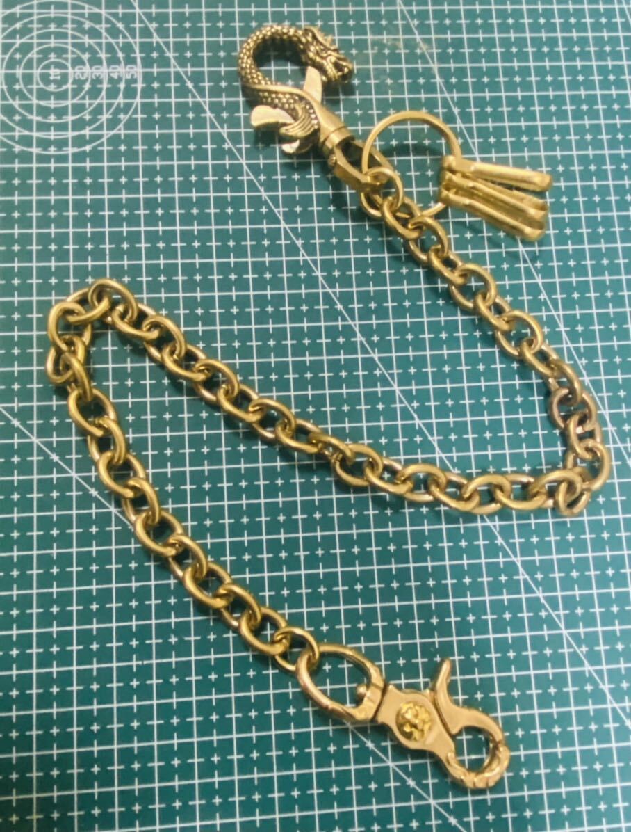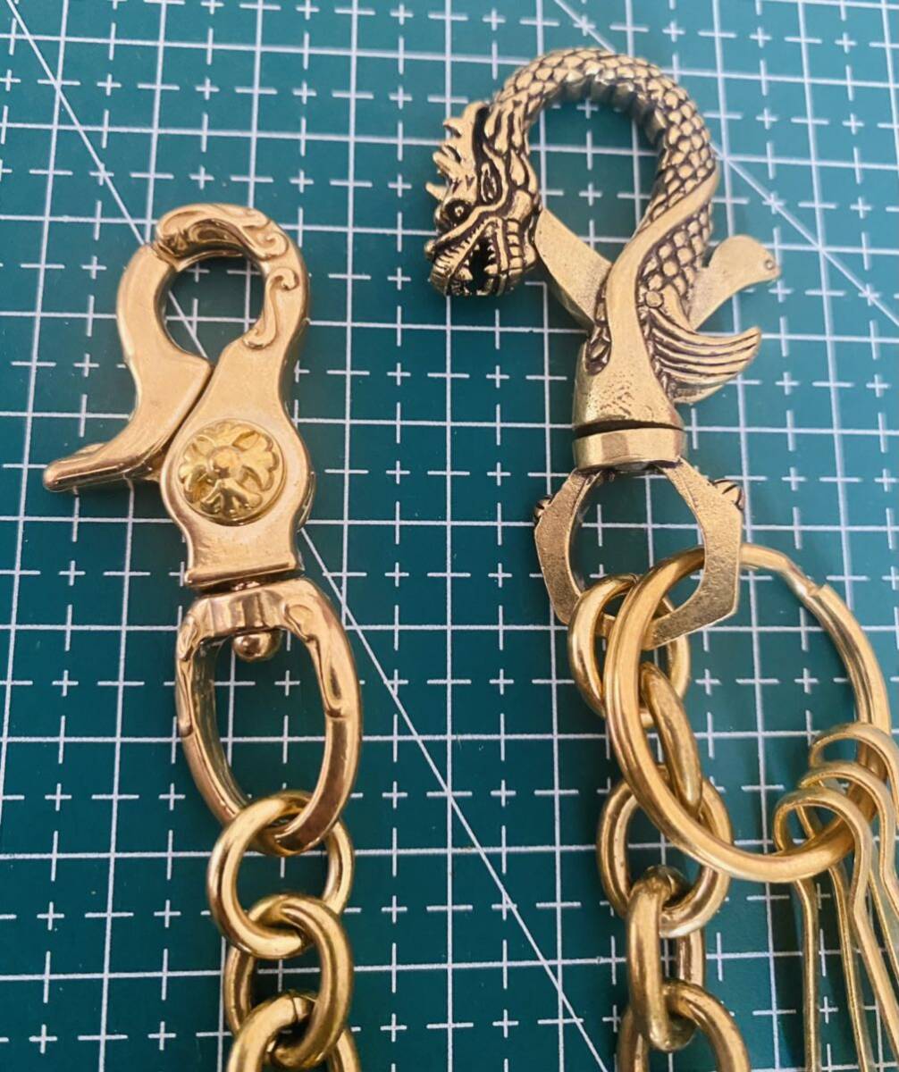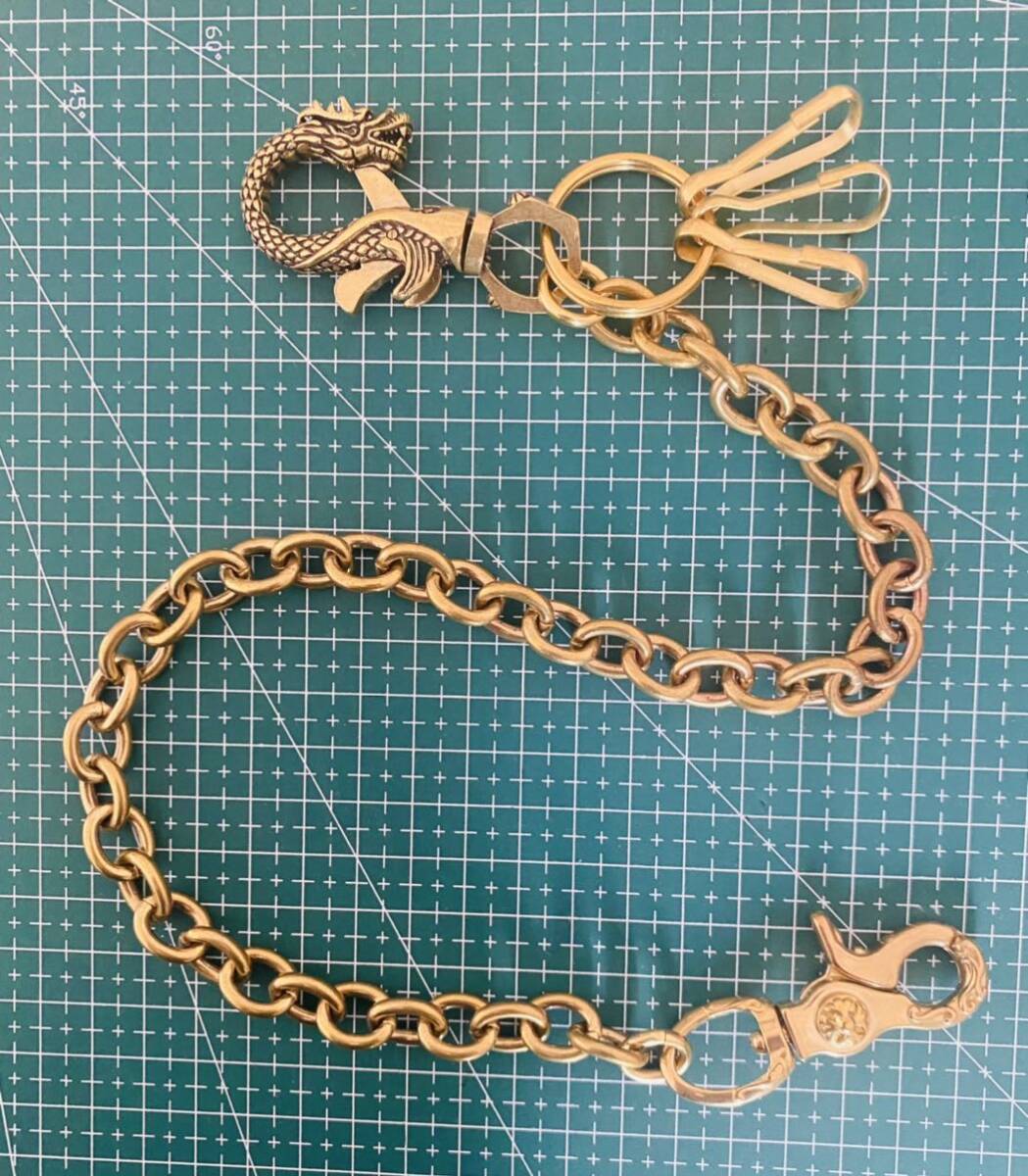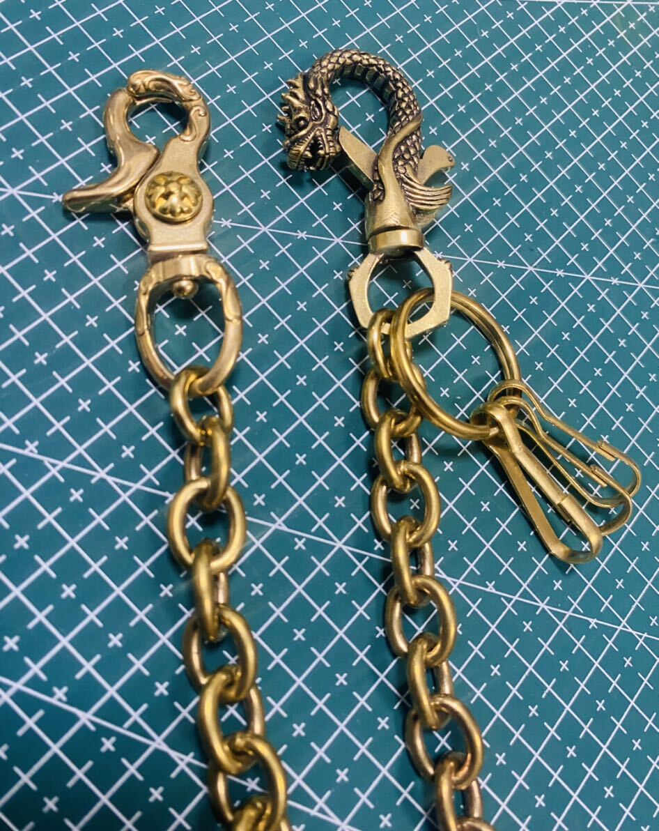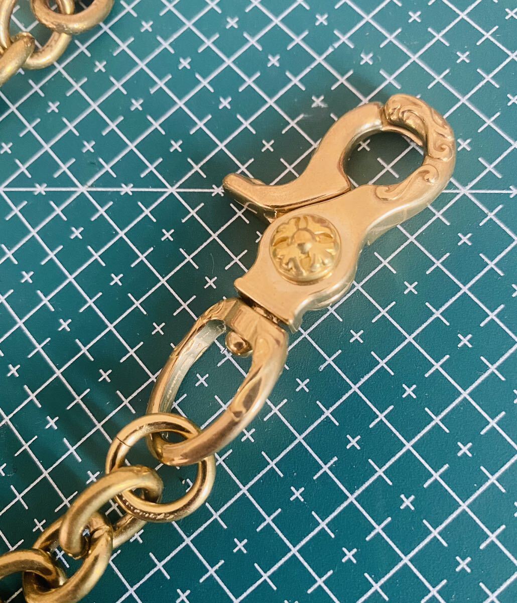 真鍮製で燻し加工でアンティーク感あふれ、丸小判チェーンでシンプルなデザインの真鍮製ウォレットチェーン。