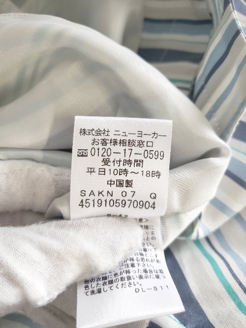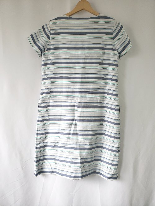 ◇ ⊂ NEWYORKER ニューヨーカー ボーダー 半袖 膝丈 ワンピース サイズ11AR グレー ネイビー系 マルチ レディース E