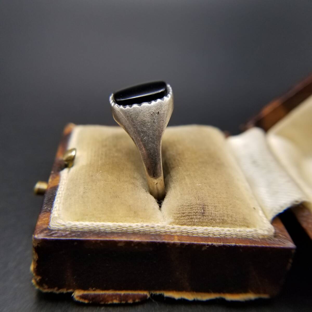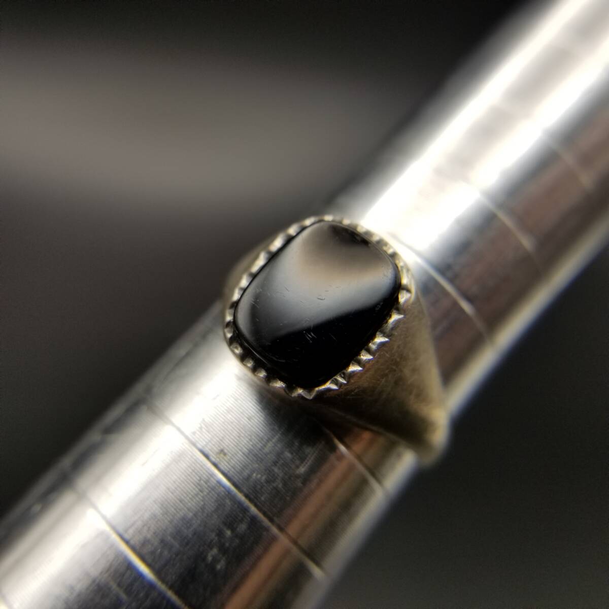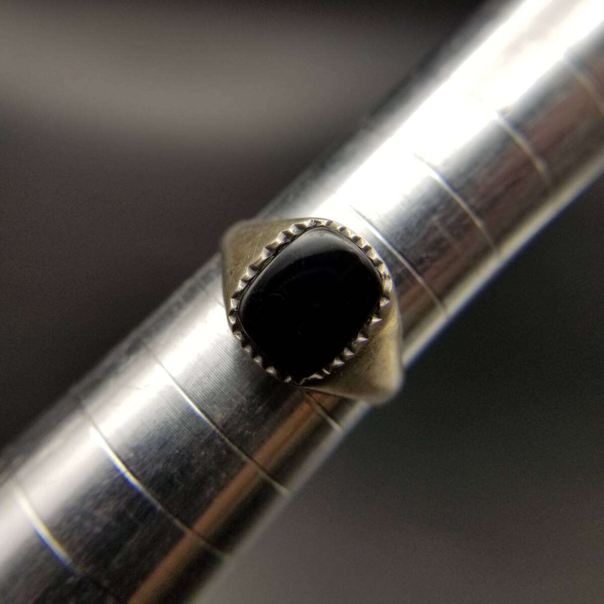 オニキス レクタングル インレイ 925 シルバー ヴィンテージ シグネット リング 銀 指輪 クラシック ミニマリスト ユニセックス Y24-M
