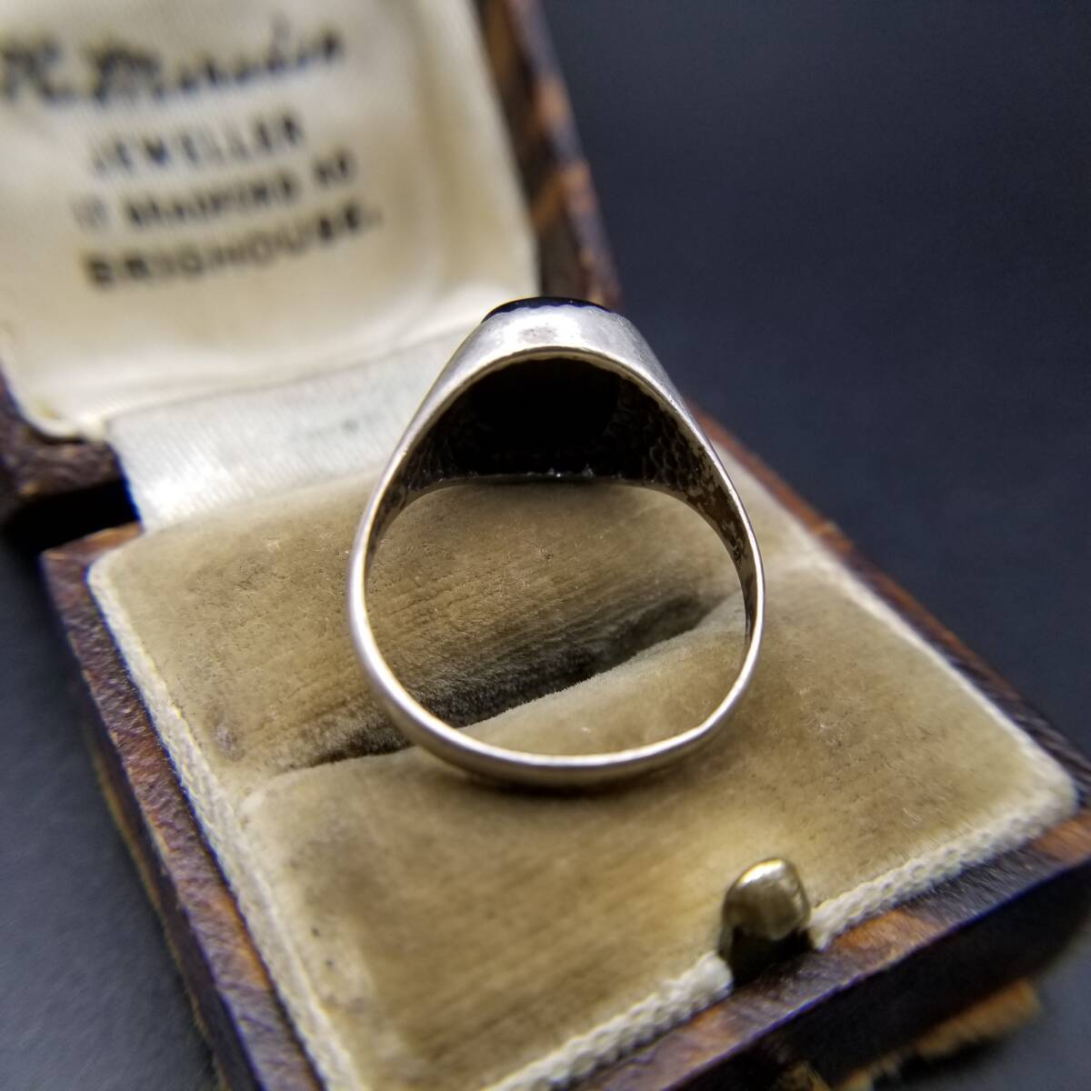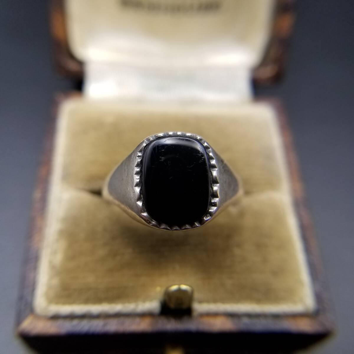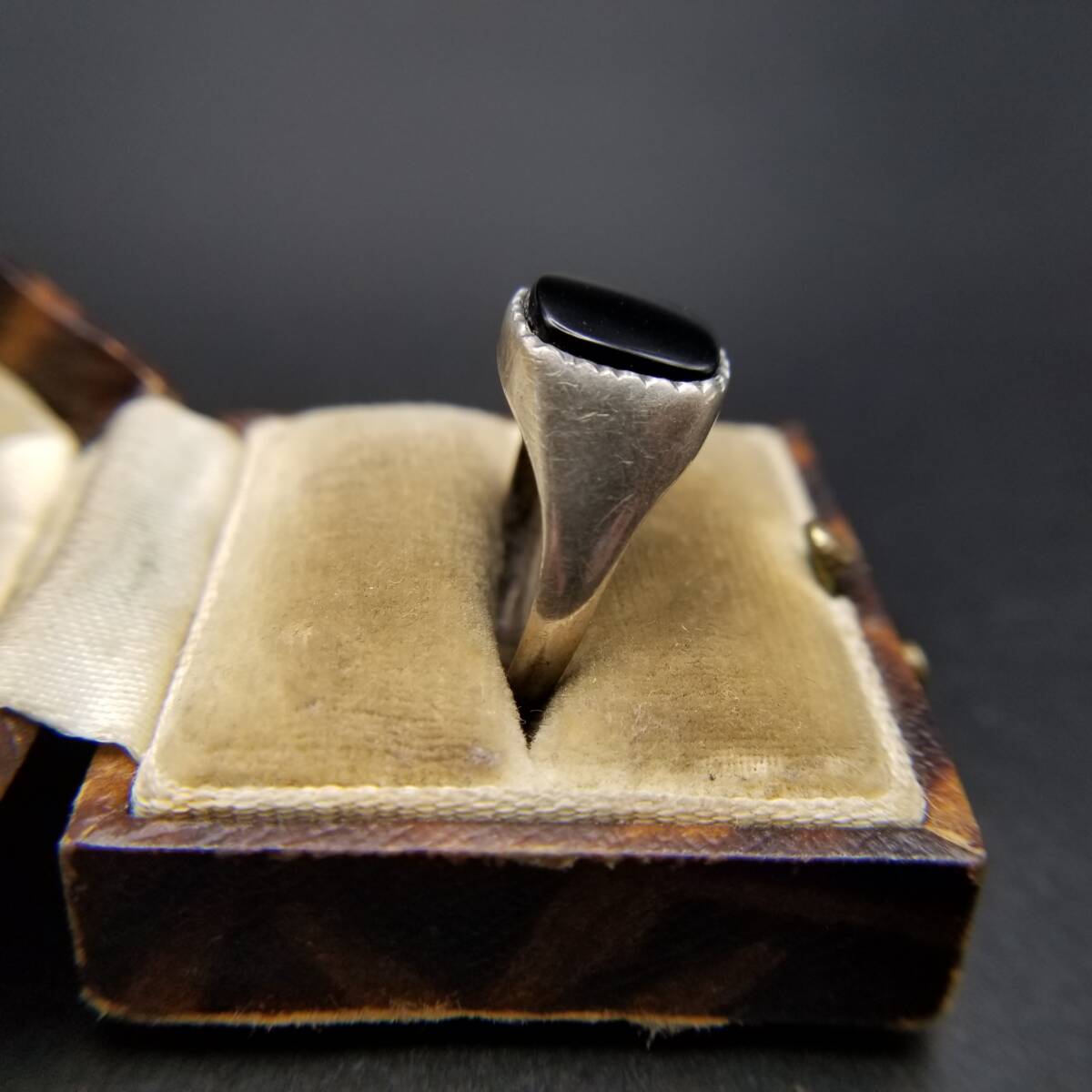 オニキス レクタングル インレイ 925 シルバー ヴィンテージ シグネット リング 銀 指輪 クラシック ミニマリスト ユニセックス Y24-M