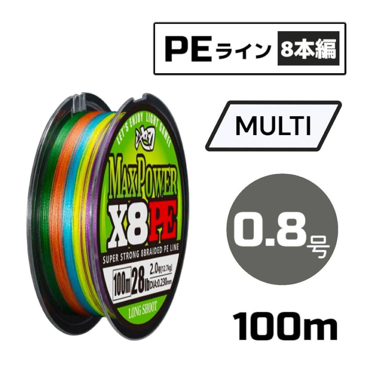 PEライン 8本編み 100m マルチカラー X8 道糸 釣り糸 【 1.5号 】