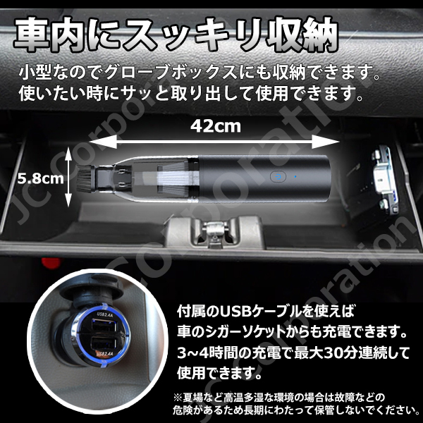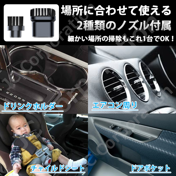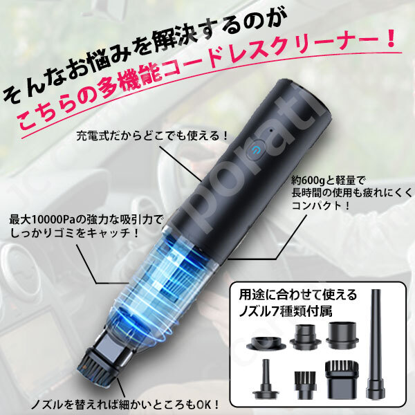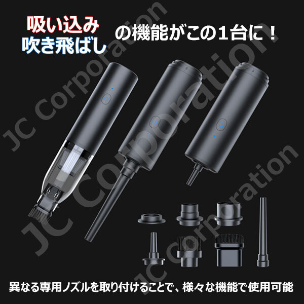 1台4役 多機能電動カークリーナー 車載 コードレス USB充電式 掃除機 車用 7種類ノズル 軽量 コンパクト