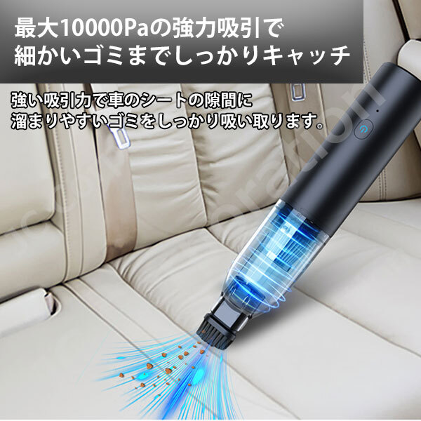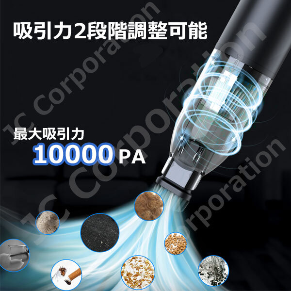 最大10000PAの強い吸引力により、髪の毛・食べこぼし・パンくず・小麦粉・ペットの毛やトイレ砂・爪・車シートの隙間に挟まったゴミとホコリもきれいに吸引してくれます。