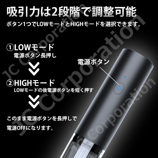 その後、電源ボタンを短く押すとHIGHモードになります。長押しすると電源がオフになります。