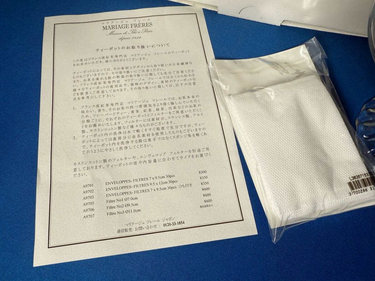 | 新品未使用 MARIAGE FRERES マリアージュフレール ティーポット フランスガラス 0.7リットル | ||