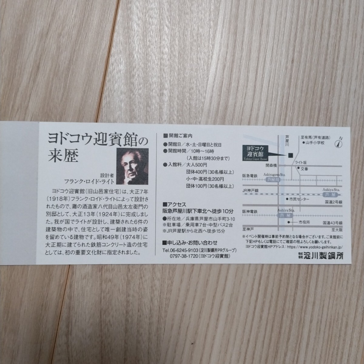 ヨドコウ迎賓館の入館券になります。