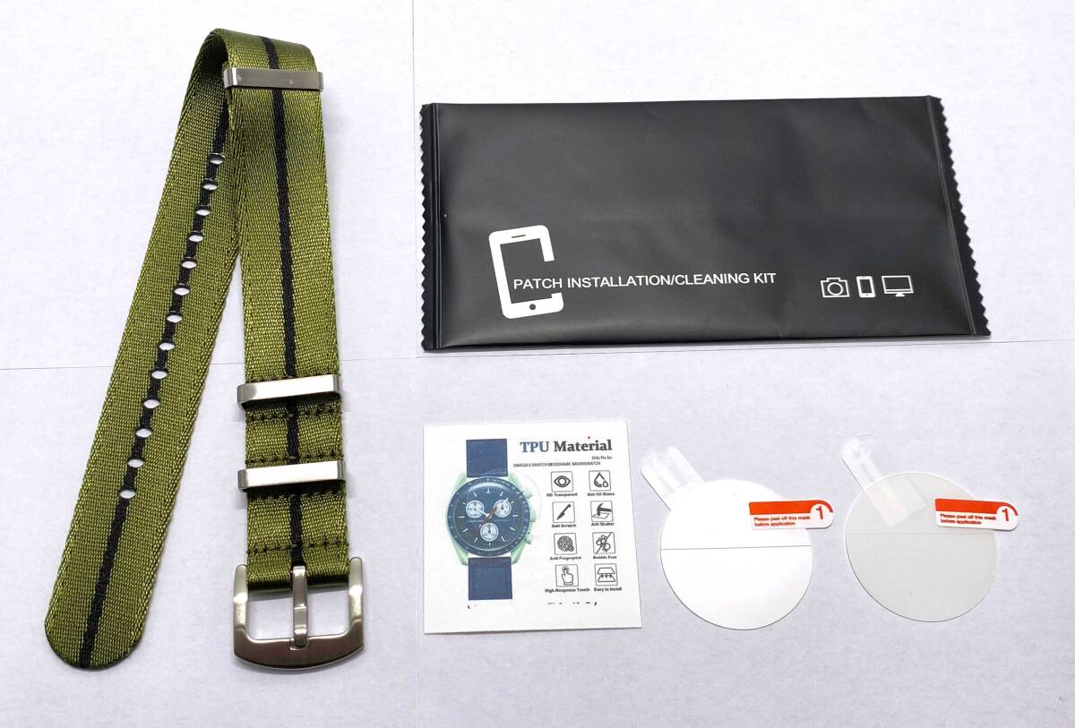 【未使用・修理部品】OMEGA X Swatch オメガ スウォッチ 対応 保護フィルム ナトーベルト セット おまけ-フィルム+1枚/バネ棒2本 / BY-1125