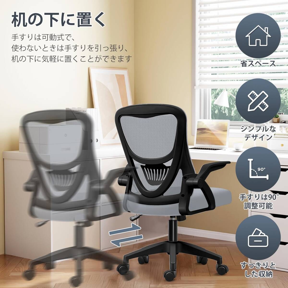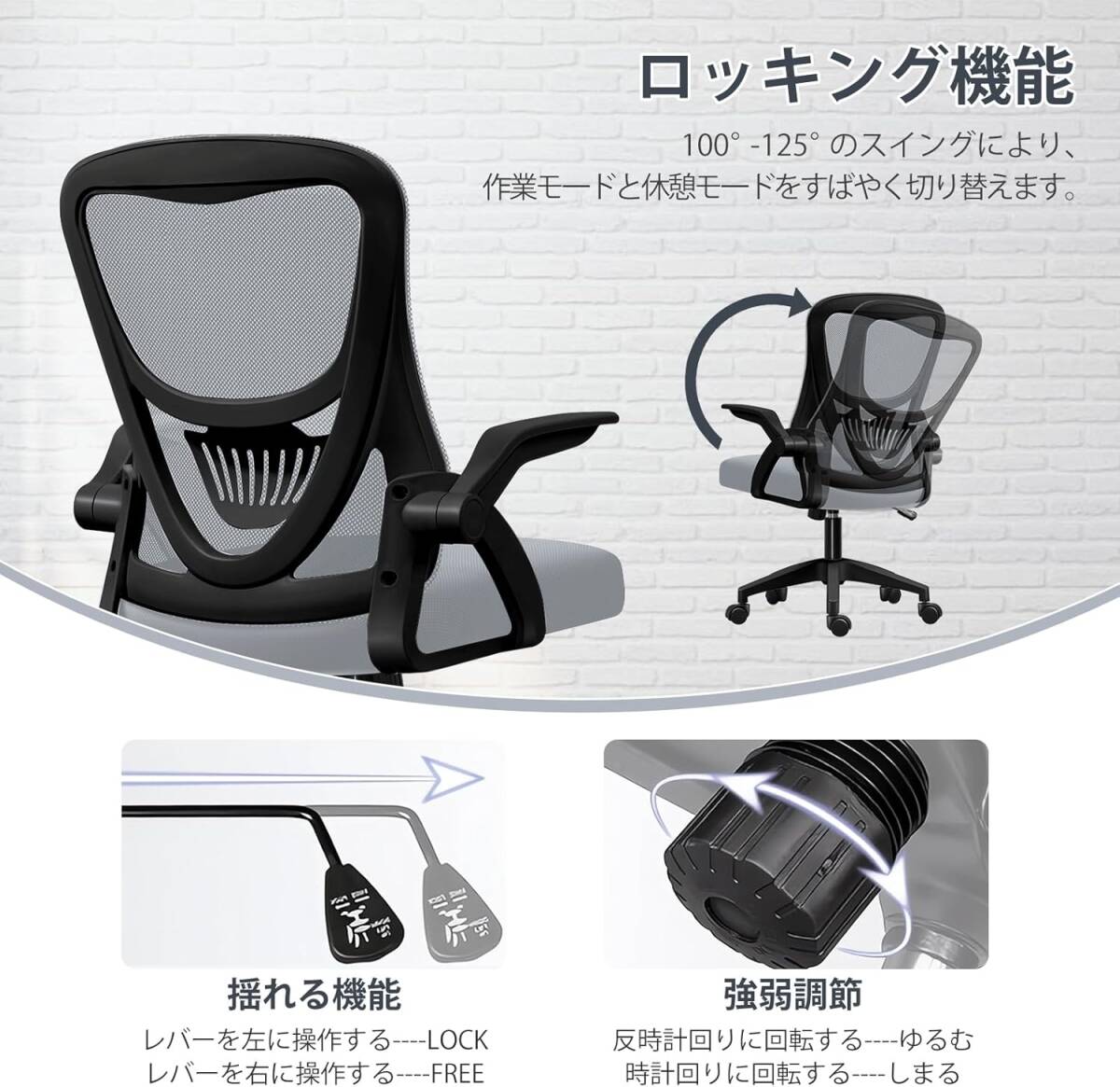 白黒色 オフィスチェア 椅子 テレワーク 疲れない 跳ね上げ式アームレスト コンパクト 約105度ロッキング pc 事務椅子 360度