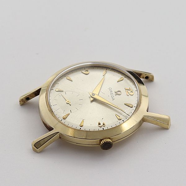 デッドストック級 オメガ 手巻き 14K/585/YG 24.2g スモセコ ラウンド シルバー文字盤 トップのみメンズ腕時計 ABC 0601500STU