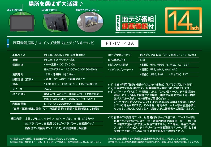 HDMI 搭載 14インチ 地デジ録画機能 本体 14V型 録画 液晶 録画搭載 番組表