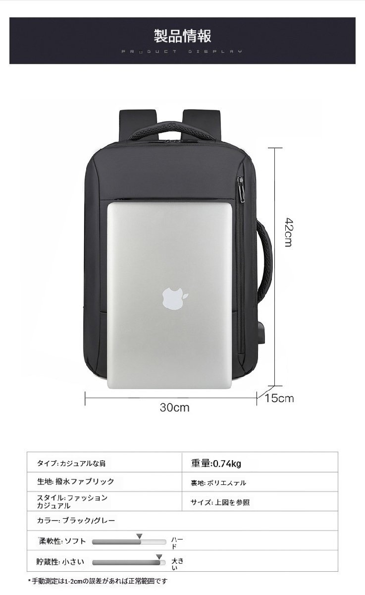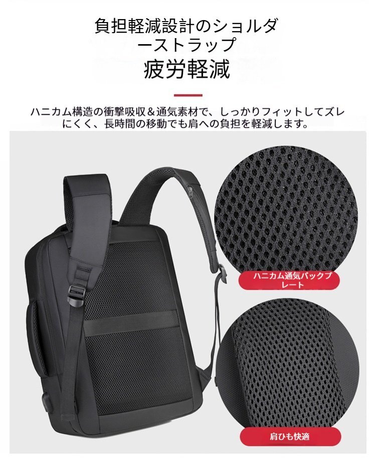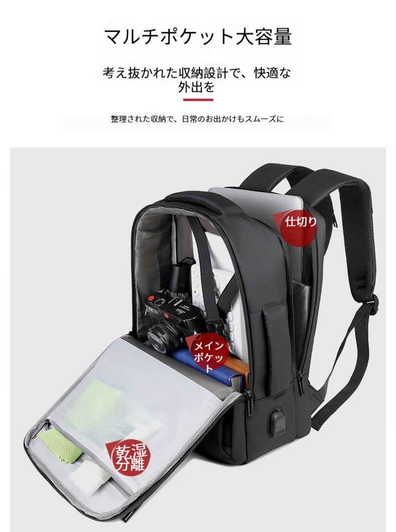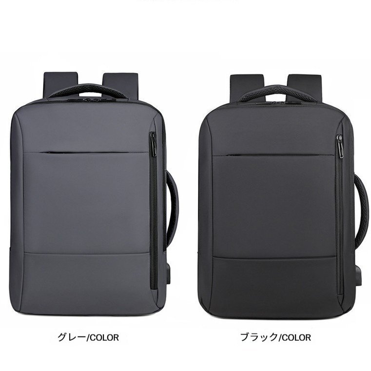 ビジネスリュック 大容量 防水 ビジネスバッグ リュック 3way 耐衝撃 防汚性 通気性 USB充電ポート 止水ファスナー BG07グレー