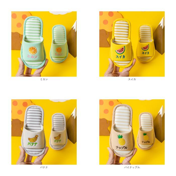 ・思わず可愛い!と言いたくなる、フルーツを刺繍したスリッパ。お子様のお気に入りを見つけて、ほっこりにっこりお家タイム♪