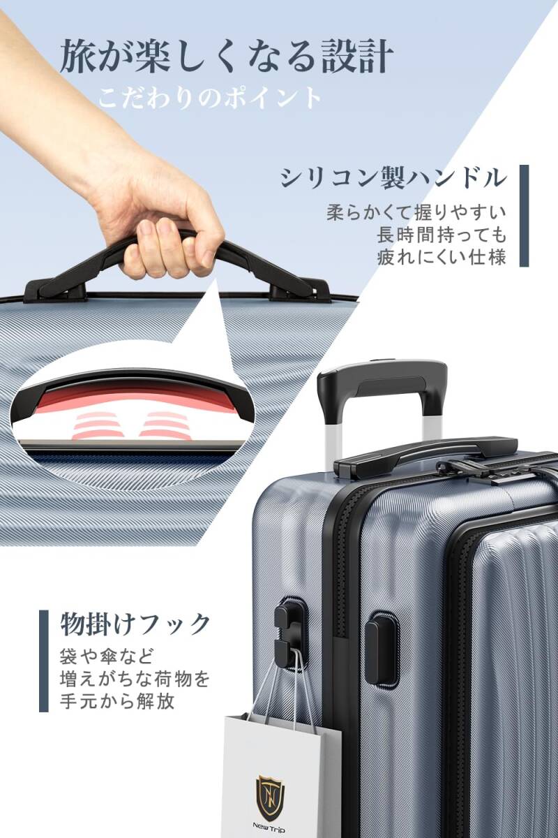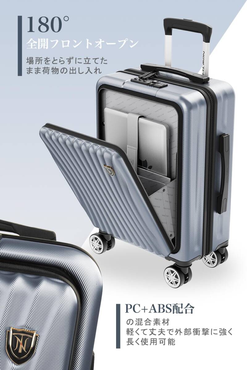 [New Trip] スーツケース 機内持ち込み フロントオープン キャリーケース Sサイズ USBポート付き ストッパー付き YKKファスナー TSAロック 静音 ダブルキャスター ビジネス 出張 1-3泊 40リットル グレー