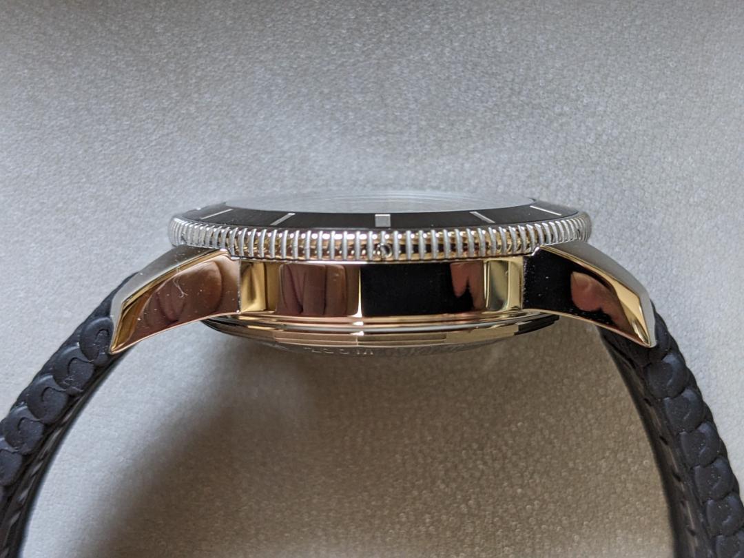 時計全体が鏡面仕上げのこのモデルですので非常に美しく仕上がっています。
