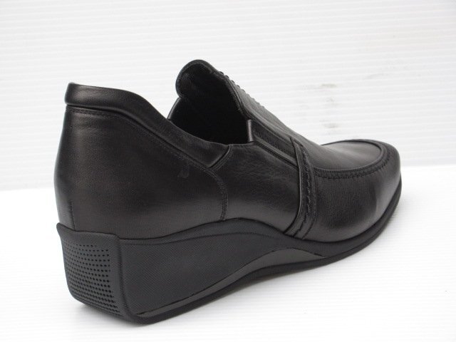 デザインと履きやすさで人気の高いステップナインのウエッジソールパンプス。歩きやすさなら、このパンプスにおまかせください。アッパーにはソフトな牛革を使用しているため、足当たりは非常に柔らかです。甲の両サイドにはゴムが入り脱ぎ履きもスムースです。また、アウトソールには衝撃吸収性のよいウレタンを採用しているので抜群の履き心地です。