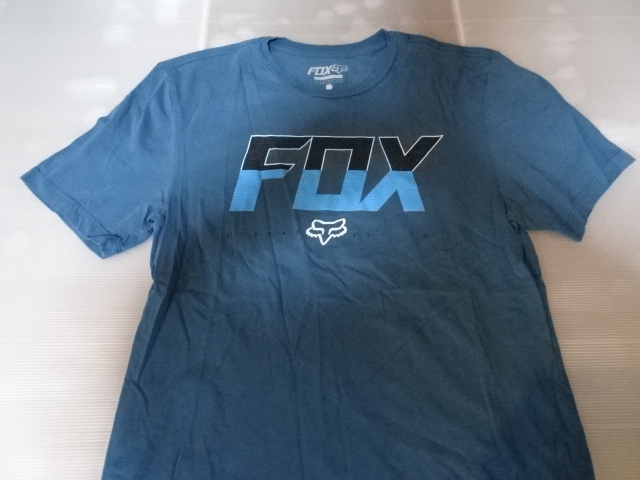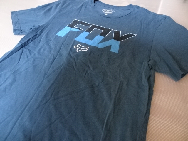 ◆ 激レア USA購入 人気バイク系ブランド フォックス 【FOX】 ロゴプリント TシャツUS Mサイズ ブルー 中古品 ◆