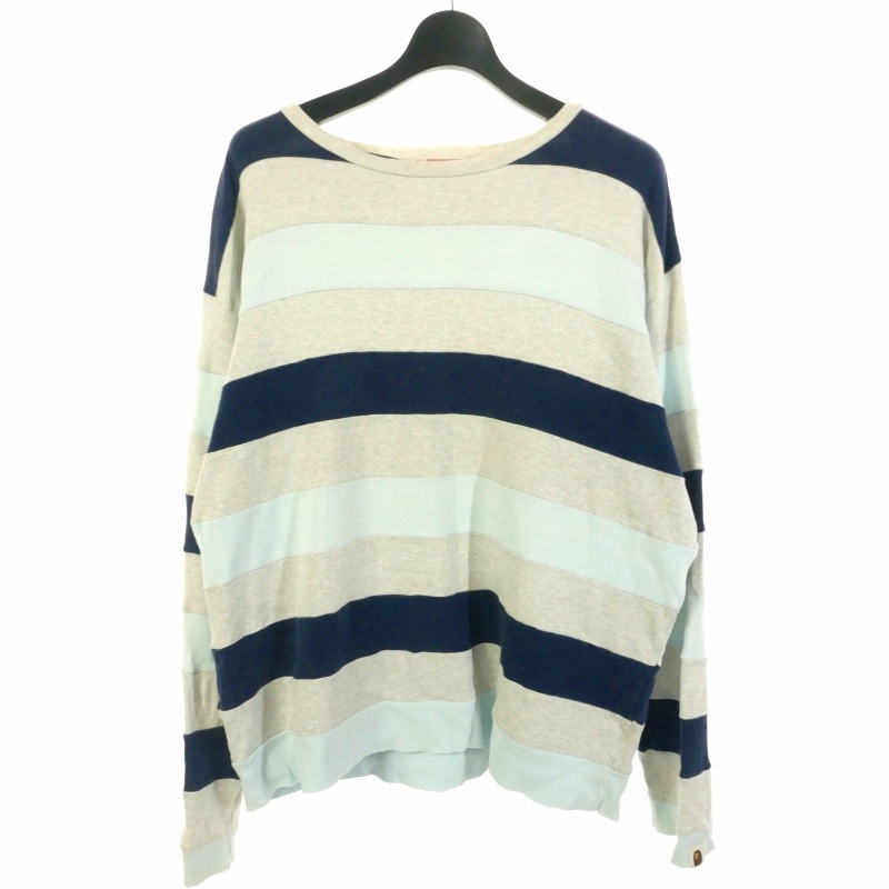 アベイシングエイプ A BATHING APE 初期 ボーダーロングT Tシャツ カットソー 長袖 L ブルー/グレー メンズ