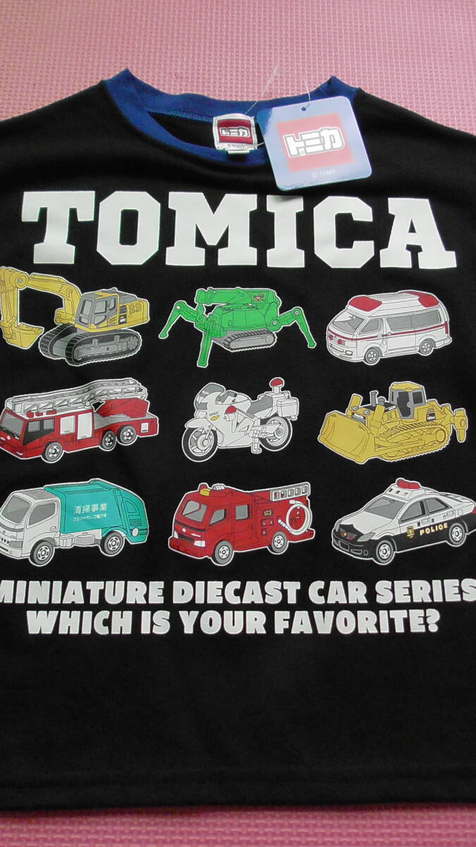 新品 100 トミカ 長袖Tシャツ パトカー 消防車 パワーショベル かにクレーン 救急車 白バイ ブルドーザー 働く車柄 男の子 95〜 送料無料