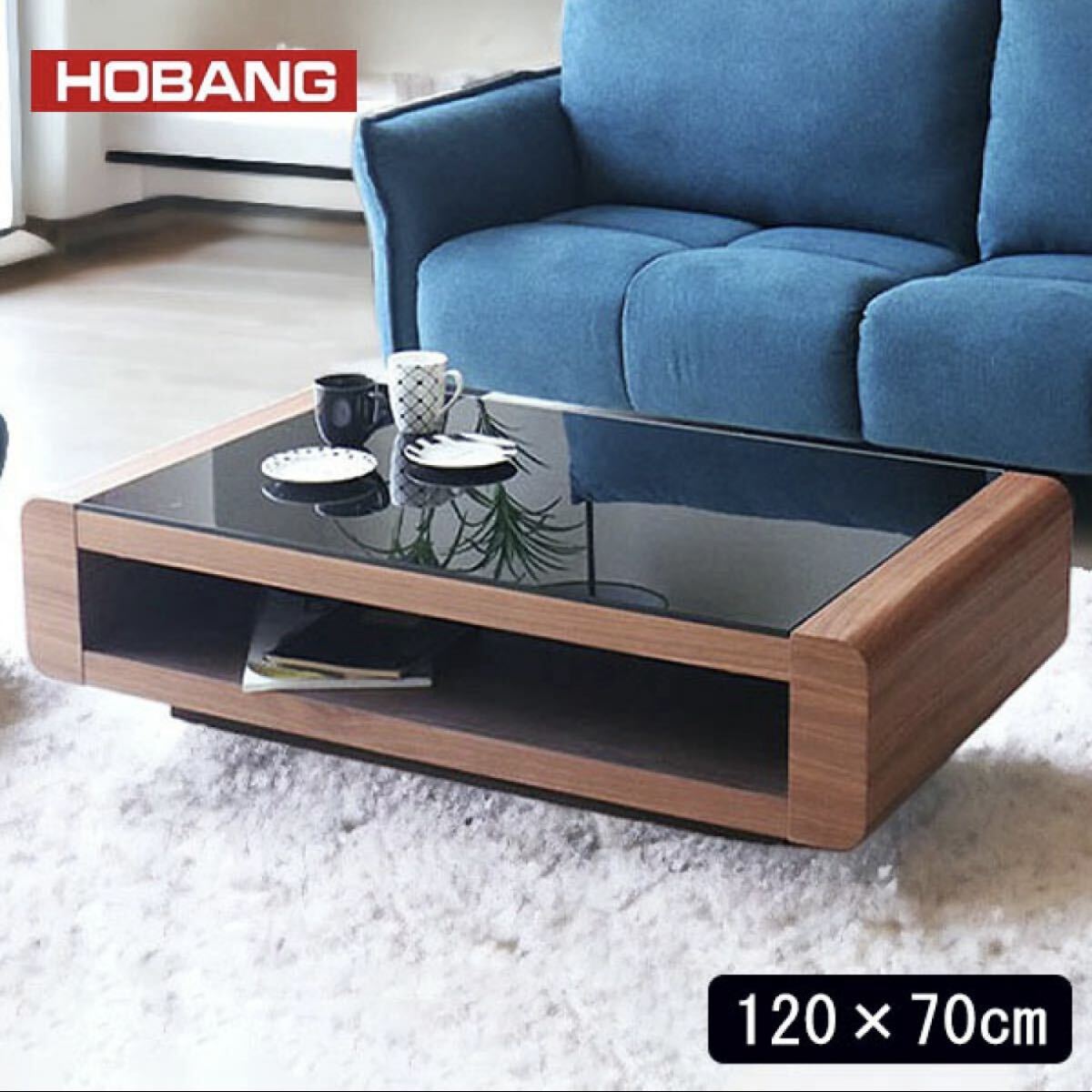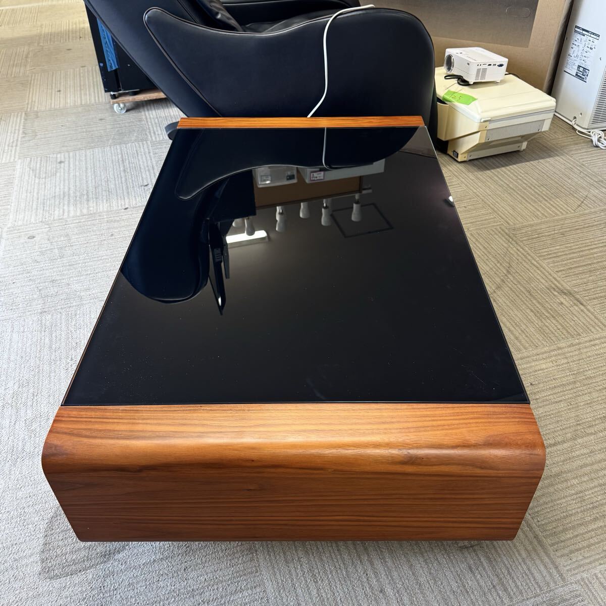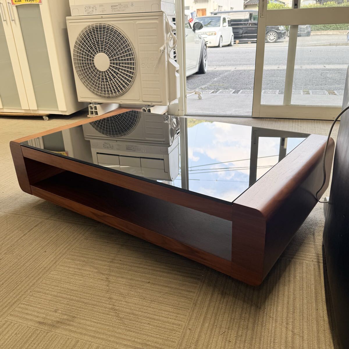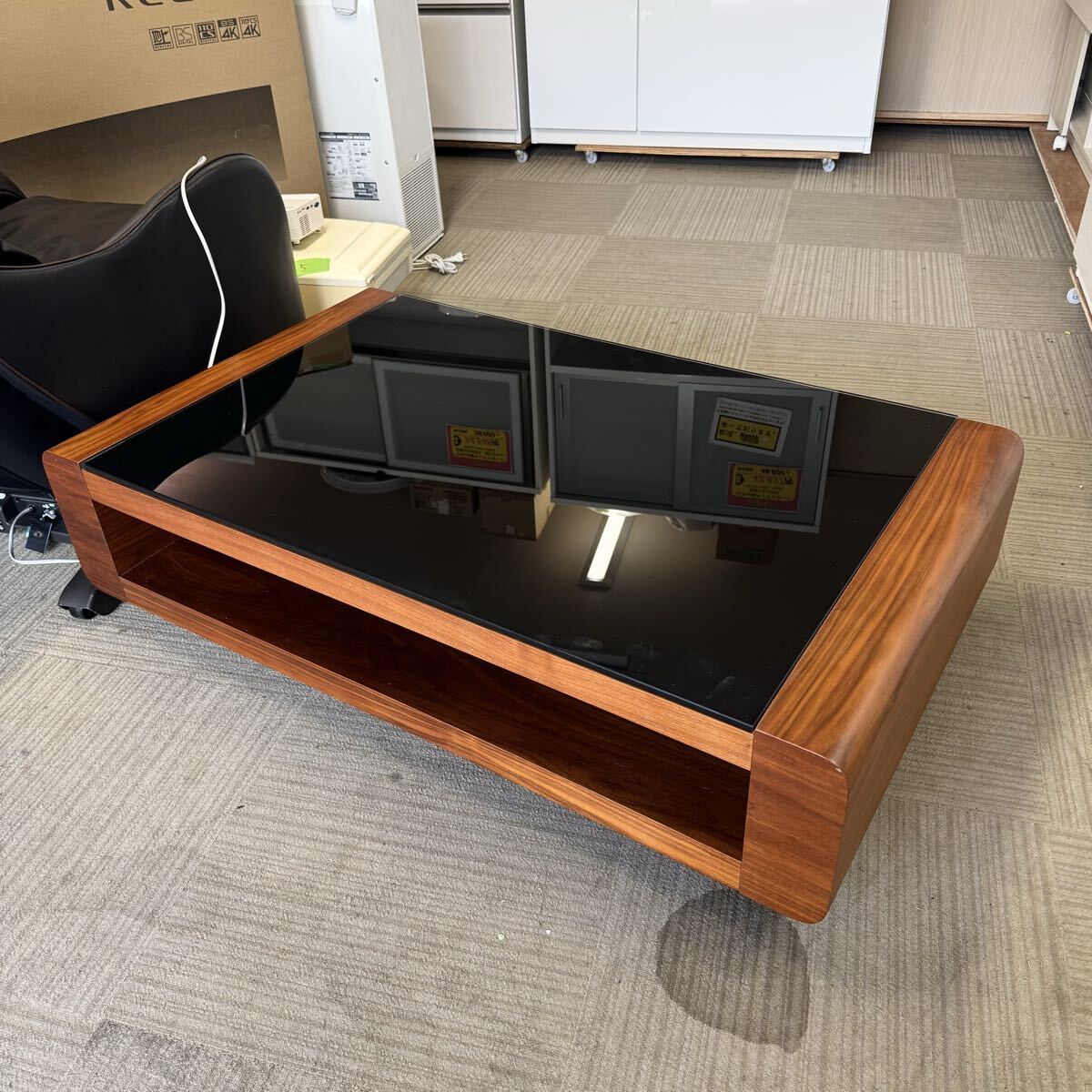 【超美品】定価66,400円★120cm幅センターテーブル★リビングテーブル★ローテーブル★ブラックガラス★オーク材ブラウン