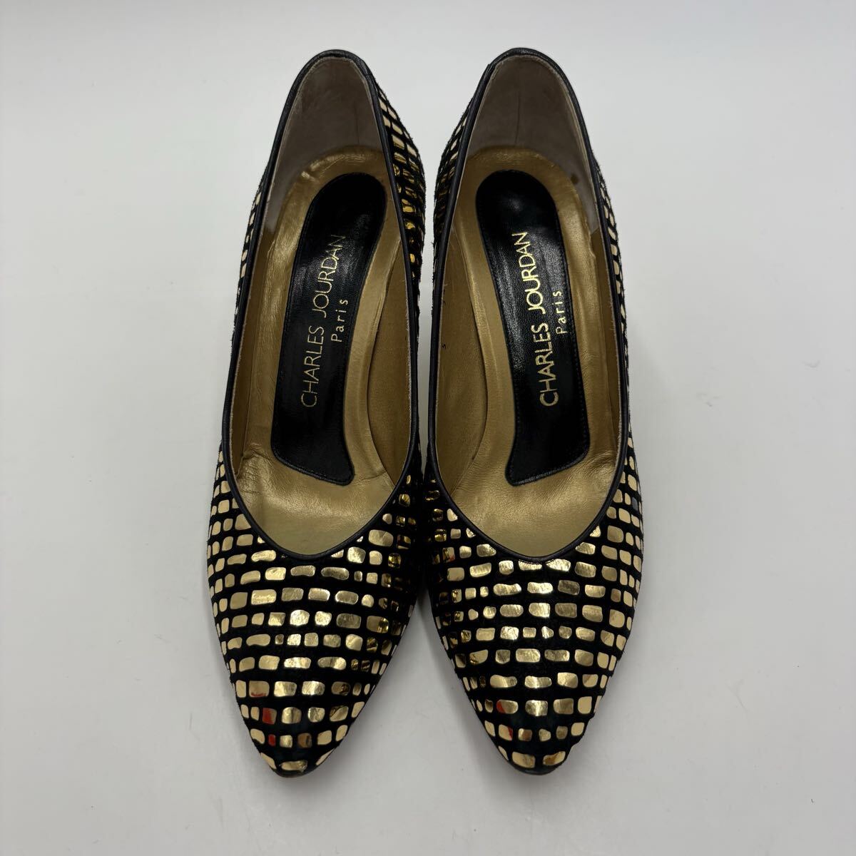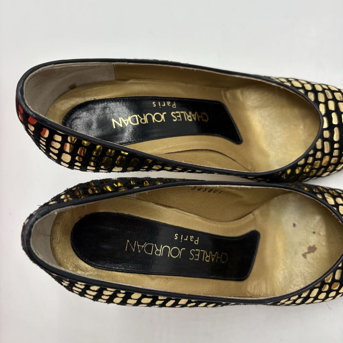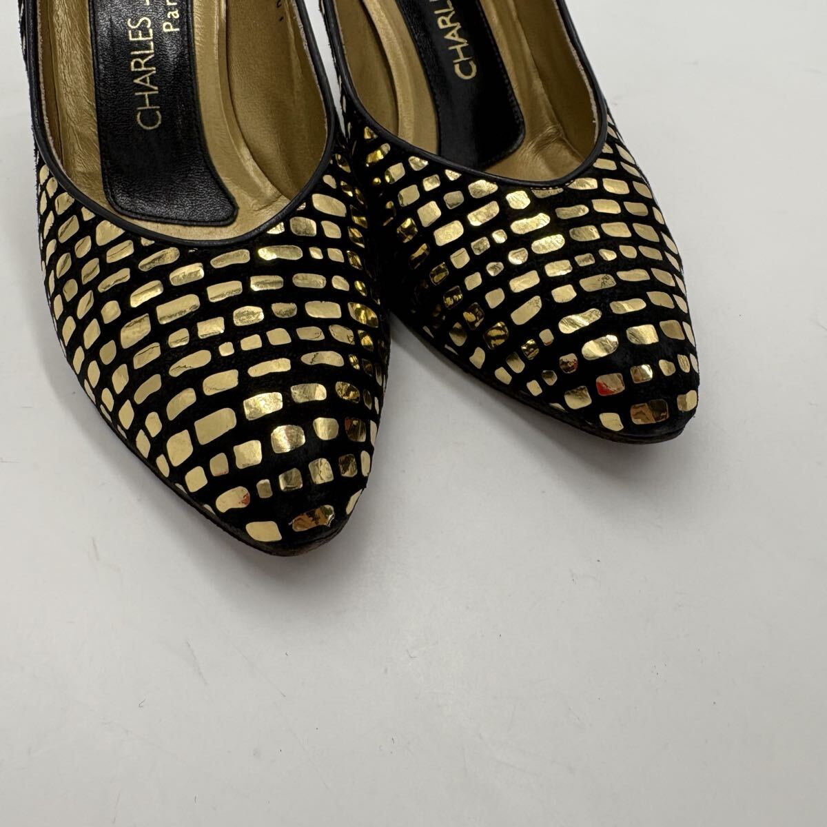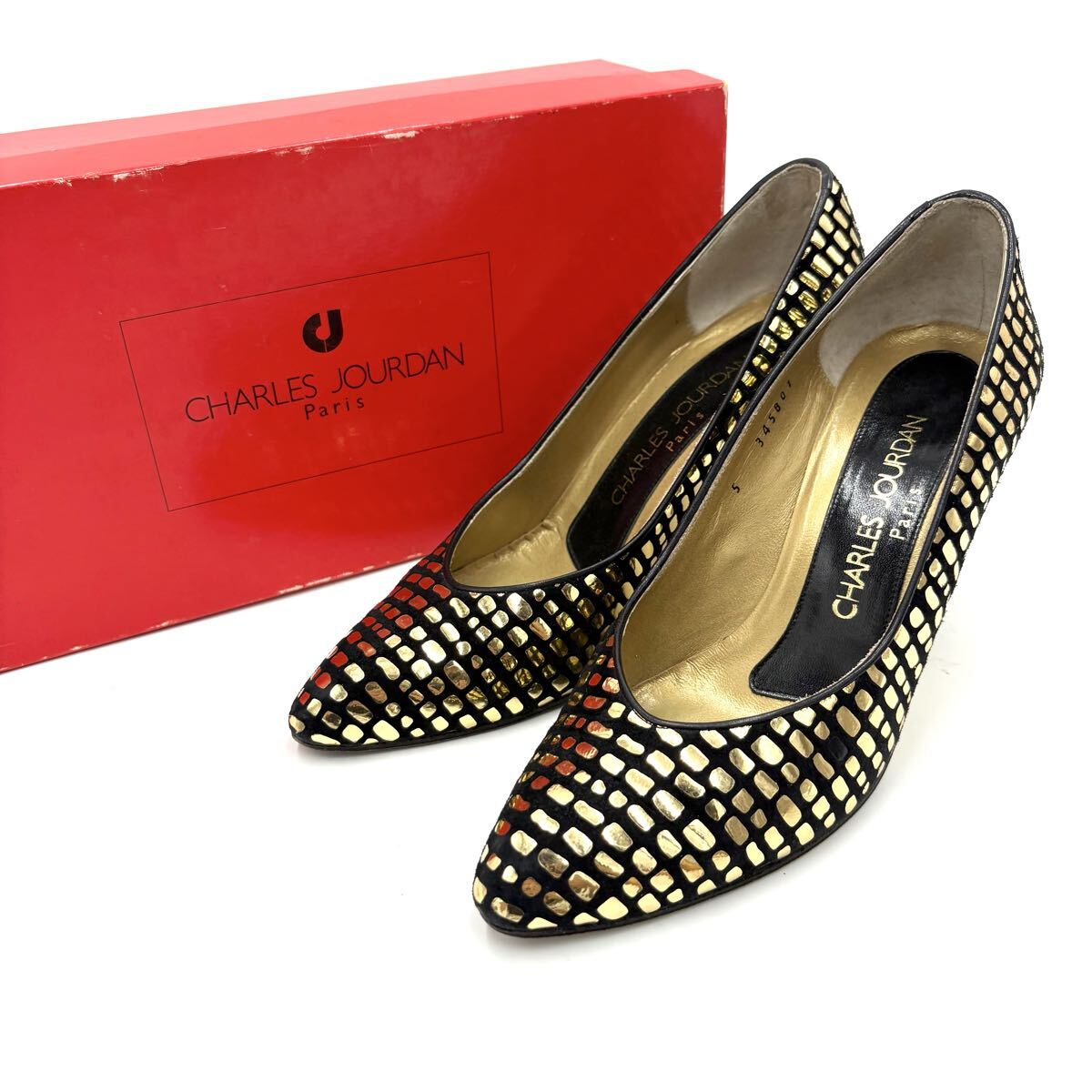 ■ 箱付き '洗練されたデザイン' CHARLES JOURDAN シャルルジョルダン ゴールド装飾 総柄 ヒール パンプス 5 22cm レディース 婦人靴