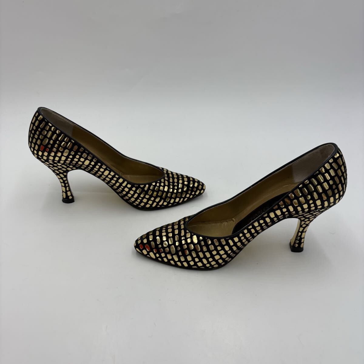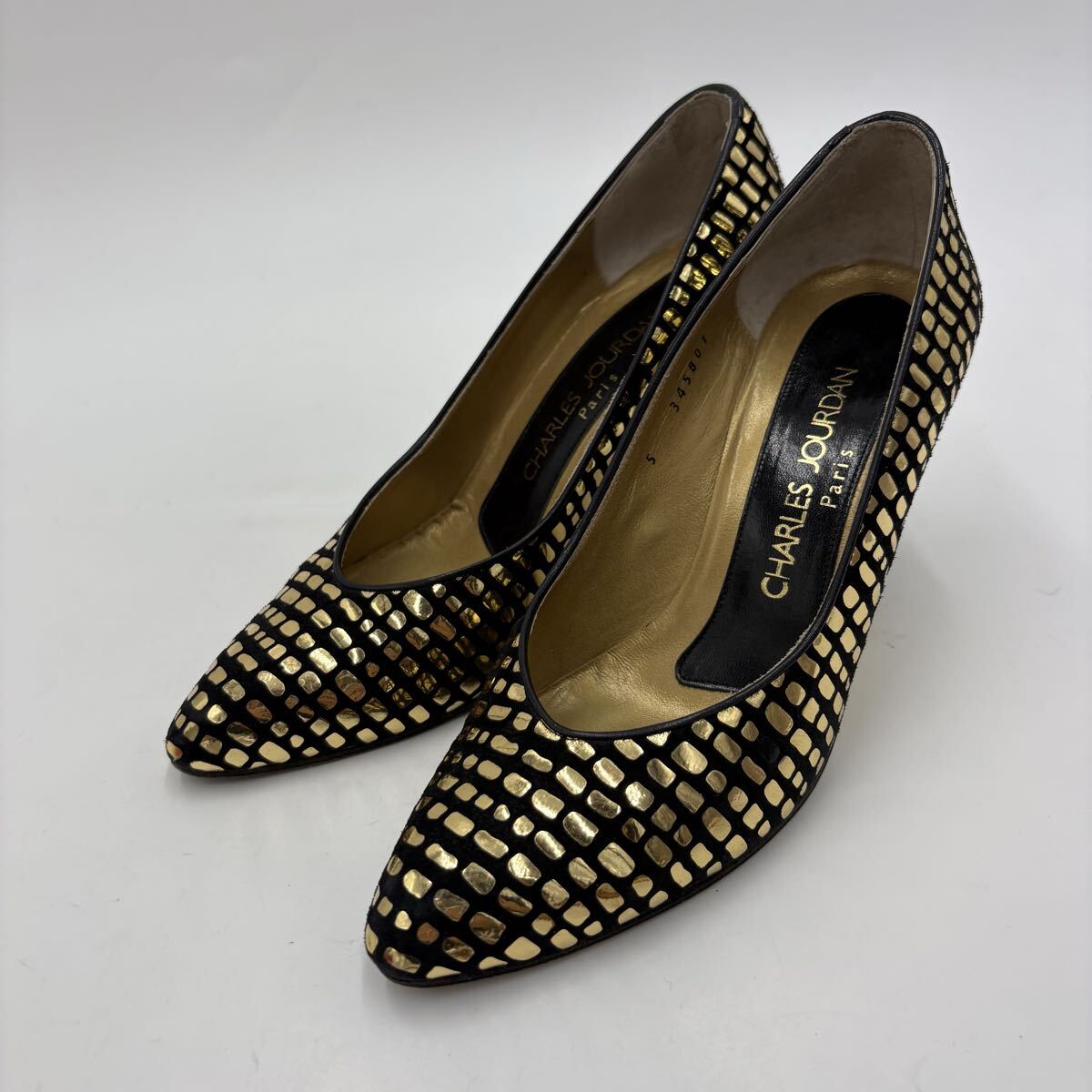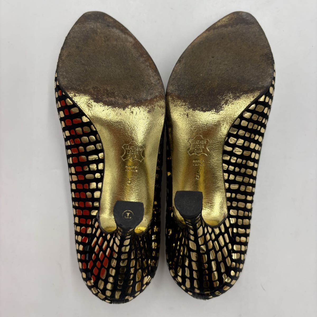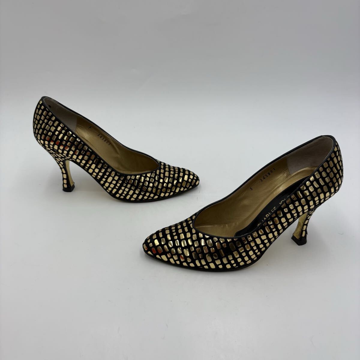 ■ 箱付き '洗練されたデザイン' CHARLES JOURDAN シャルルジョルダン ゴールド装飾 総柄 ヒール パンプス 5 22cm レディース 婦人靴