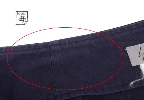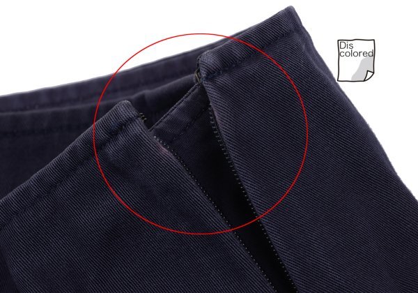 コンディション | 品質タグの印字が消えています。ウエスト裏・裾裏に擦れ、ジップ先に変色、スリット先に擦り切れ、前に色褪せがあります(写真参照)。クリーニング済み。 |