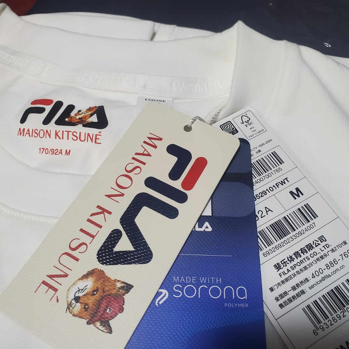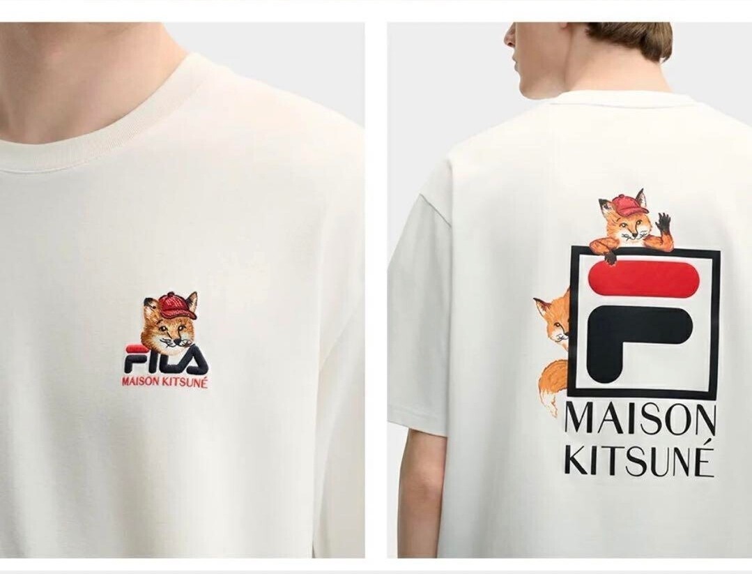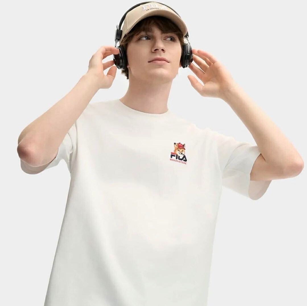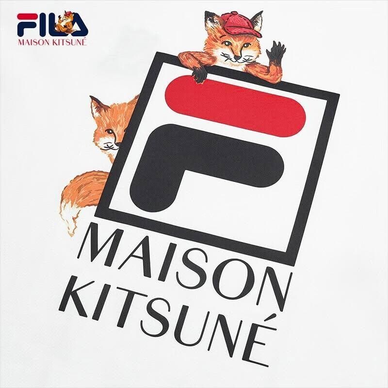 新品未使用 正規品 FILAとMAISON KITSUNEのコラボTシャツ コットン生地 男女兼用 Loose Fit メゾンキツネ フィラ ホワイト 入手困難 M