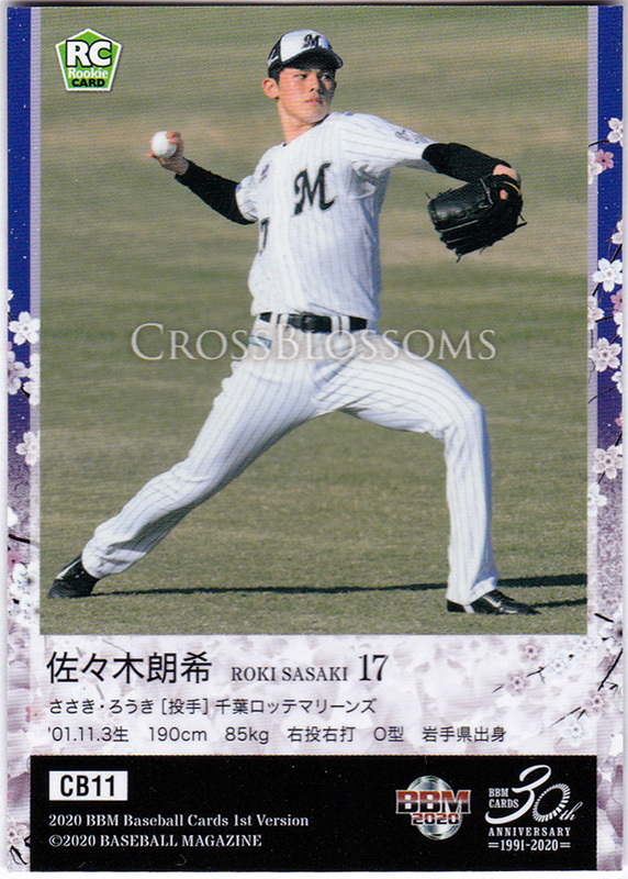 BBM 2020 1stバージョン No.CB11 佐々木朗希(千葉ロッテマリーンズ) CROSS BLOSSOMS レギュラーカード ルーキーカード RC ドジャース