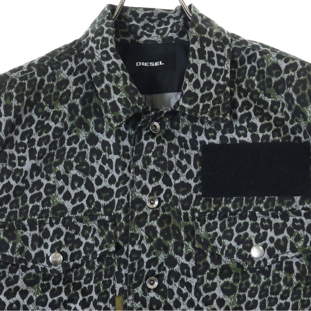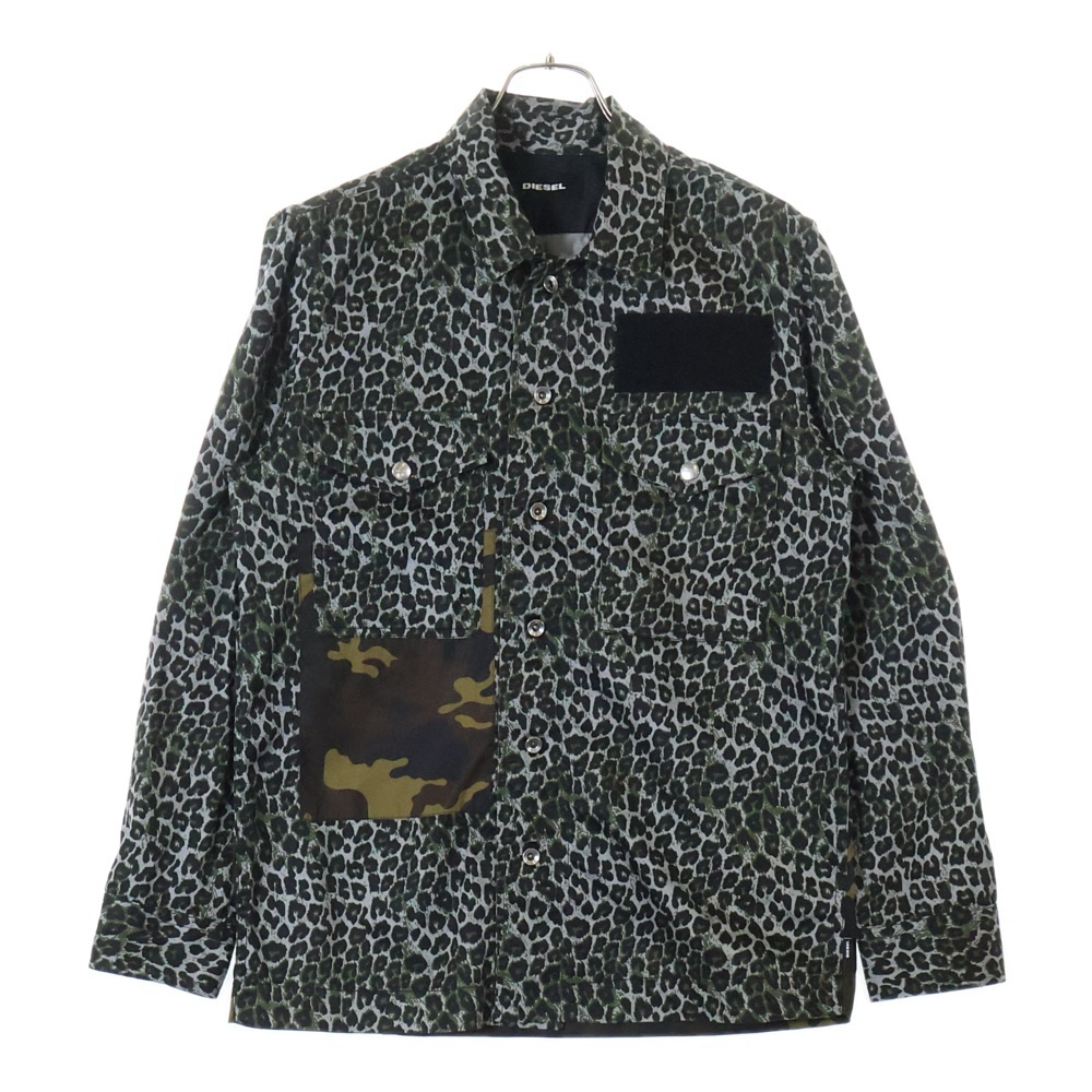 DIESEL ディーゼル 18AW S-LATER-ANIMAL JACKET フロントポケット レオパード総柄 長袖ジャケット グリーン