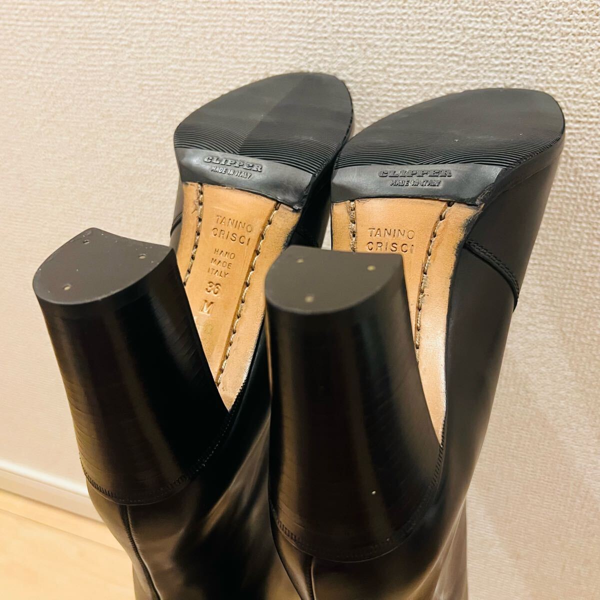 TANINO CRISCI タニノクリスチー ロングブーツ レザー ブラック36(23cm) イタリア製