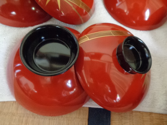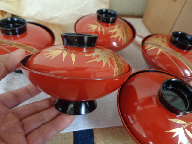越前塗 吸物椀 5個セット/汁椀 5客セット/漆芸・塗り椀/専用共箱付未使用美品-長期保管品