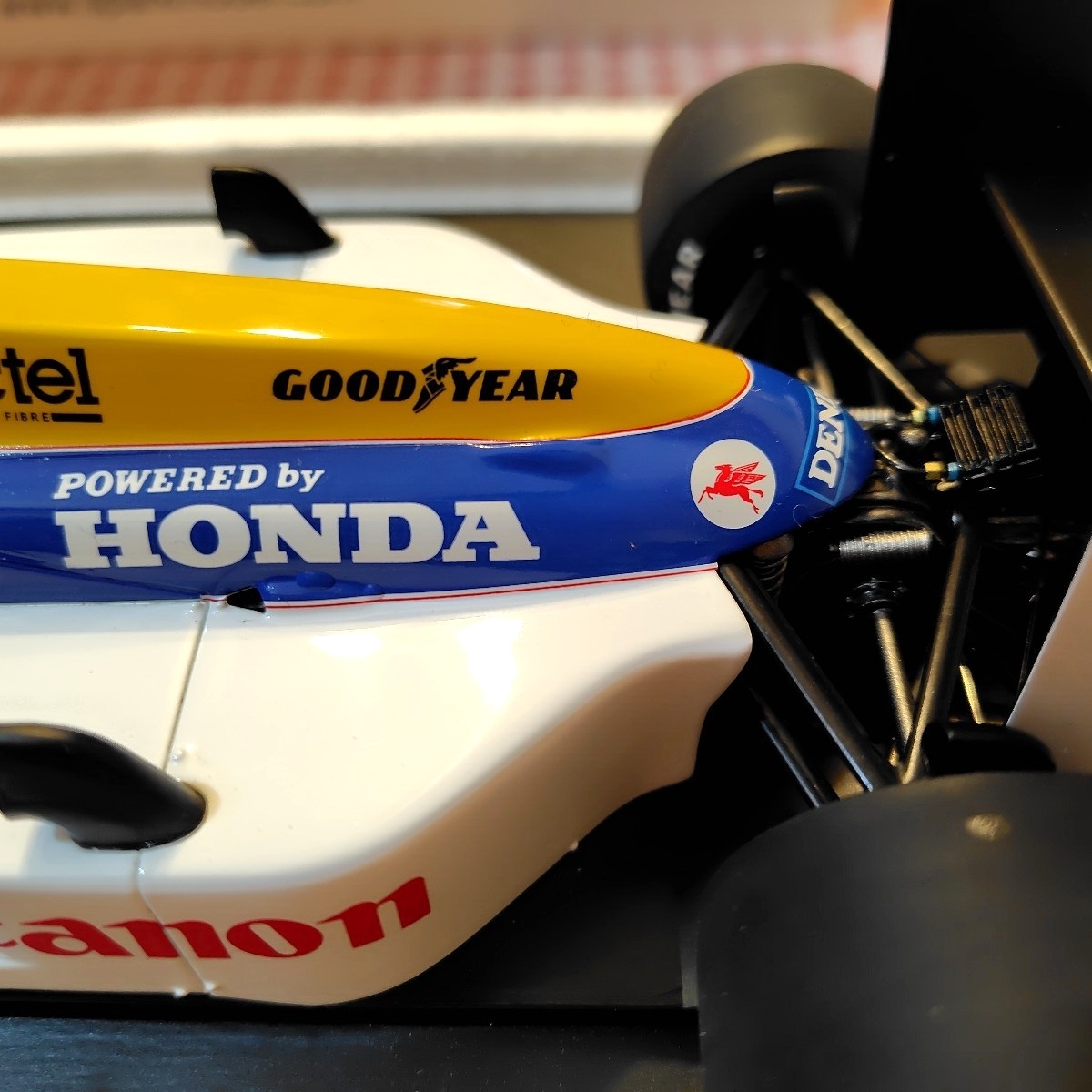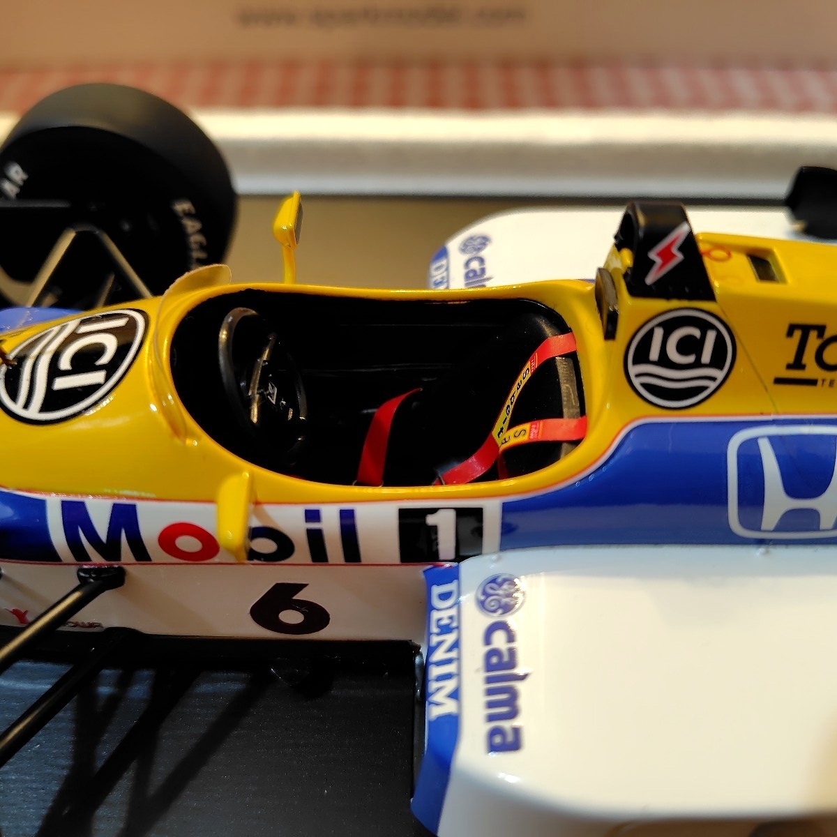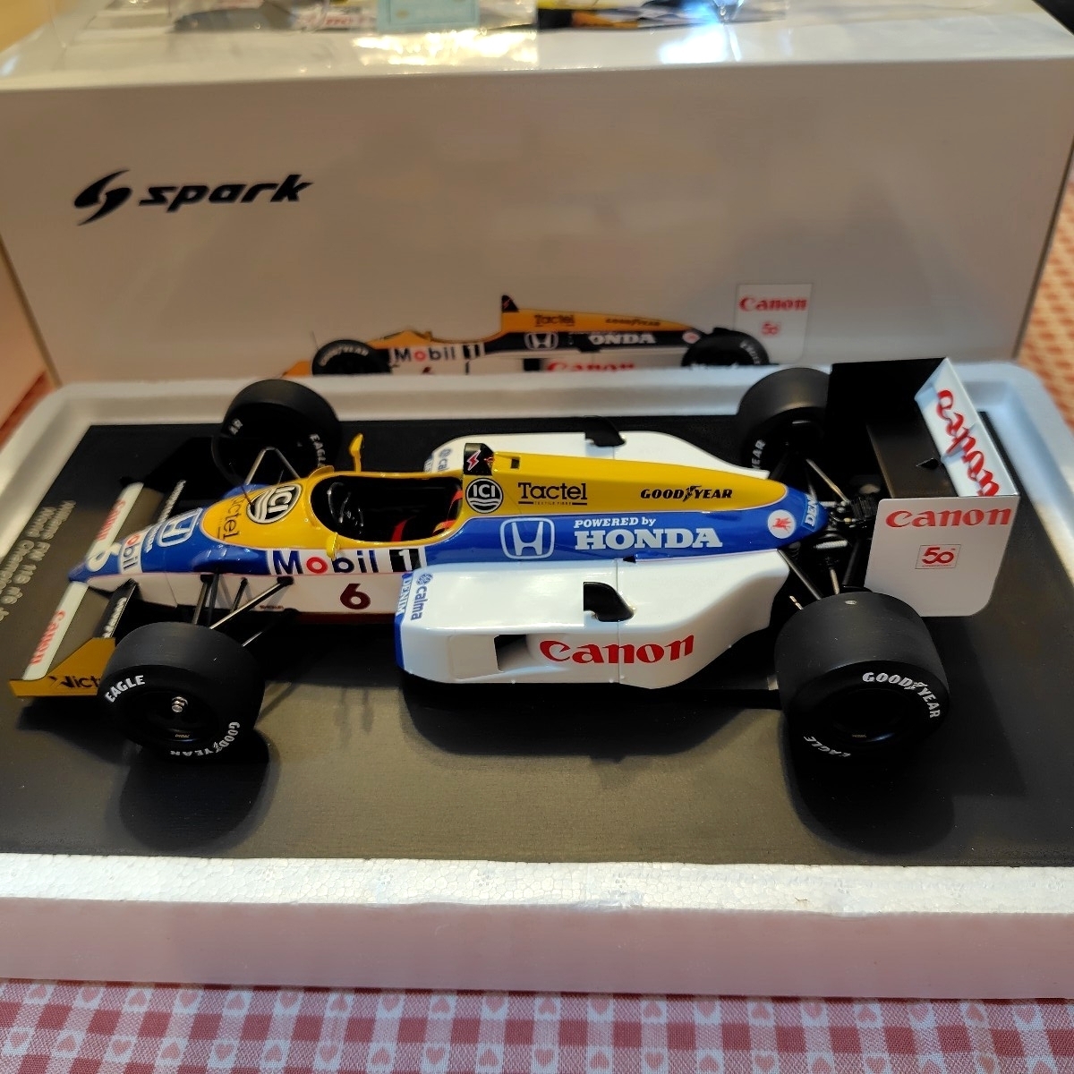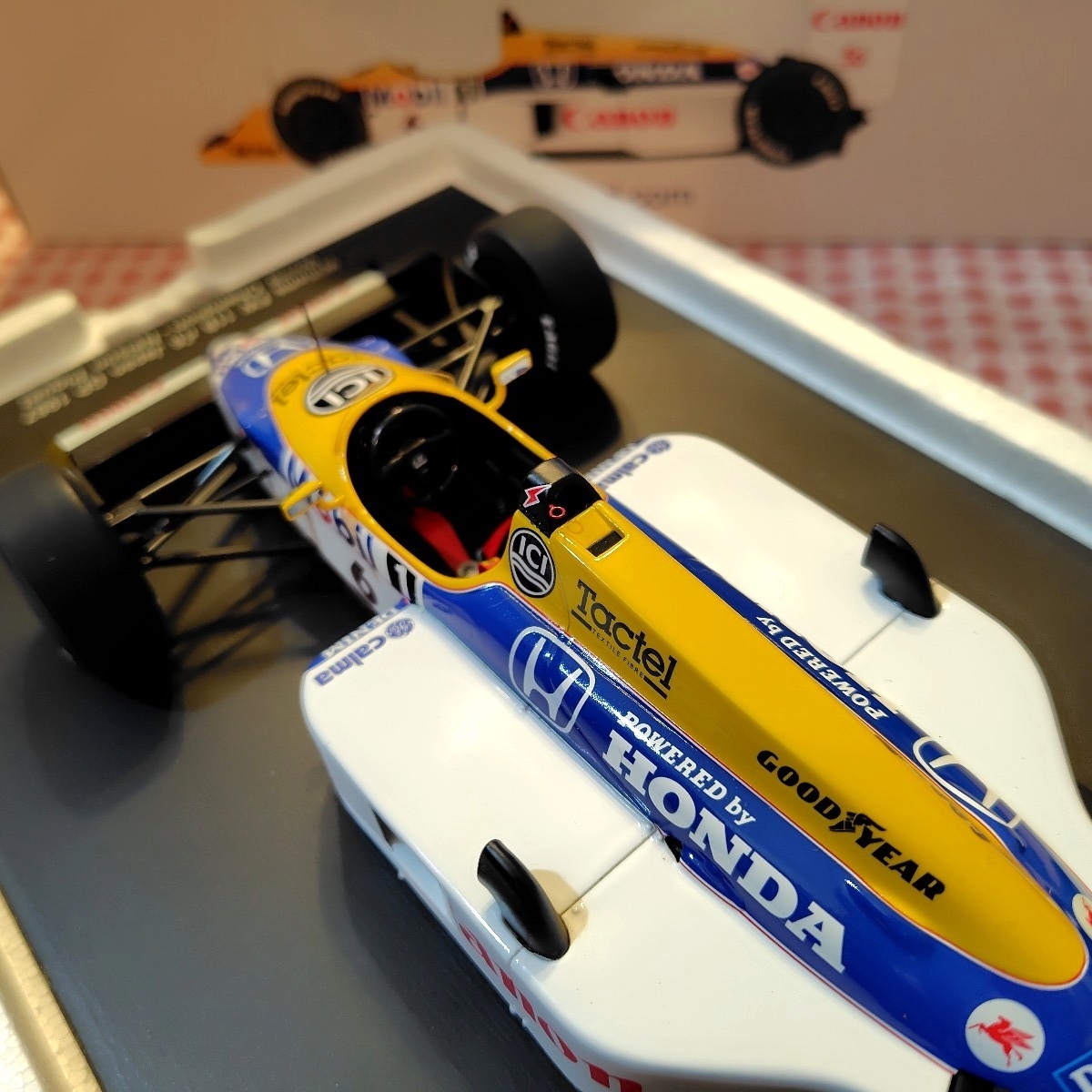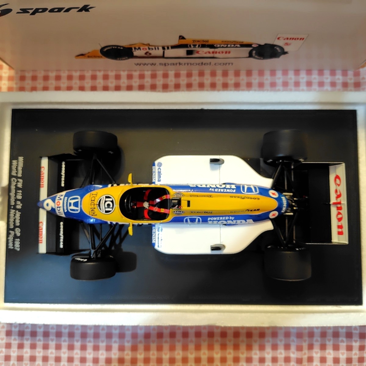 1987年の日本GPまで持ち越されたウィリアムズホンダドライバー2人によるチャンピオン争いを制したのはネルソン・ピケでした。この年はホンダエンジンが圧倒的なパフォーマンスを発揮しました。モデルはスパーク1/18スケールです。3年程前に未使用で購入し、現品確認後は段ボール箱に入れてモデル部屋で大切に保管していました。箱も含めて傷や擦れは無く新品同様の美品です。同じモデルを出品させて頂いておりましたが、ご購入頂いたので新たに出品させて頂きます。今や手に入れるのが難しいホンダエンジン搭載のスバークウィリアムズホンダモデルです。是非ご検討頂いていた方はご購入の程、宜しくお願い致します。