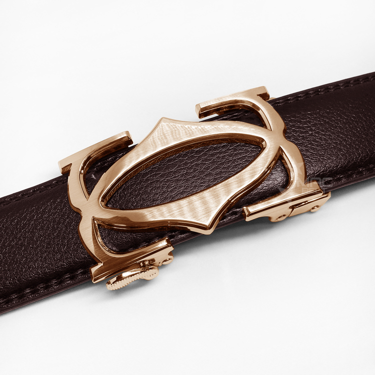 サイズ調整はいつでもワンタッチで自由自在。快適レザーベルトです。