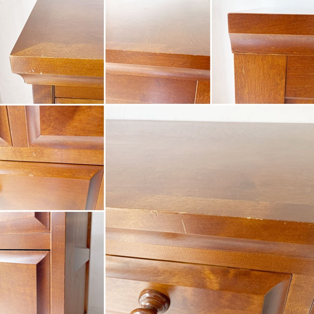 コメント | 昭和39年、「民芸運動」の流れを汲み設立された"北海道民芸家具"。の整理箪笥です。 用途とデザインが完全に一体となった、「用の美」を体現したかのような1点。 上質な樺無垢材がふんだんに使用され、一生ものと呼ぶにふさわしい耐久性を誇ります。 寸分の狂いも無くフレームに収まる引き出しはレールが無くともスムーズに開閉し、その造りの良さを感じて頂けるかと思います。 今回の入荷は6段9杯の大容量仕様。高さは約155cmと控えめな為、天板まで余すところなくお使い頂けます。 和室には勿論、洋室のアクセントとしてもオススメな1点です。是非この機会にご検討くださいませ。 ※当ショップは、主にリサイクル品を取り扱っております。基本的にUSED品である事をご理解頂き、ご入札をご検討下さいませ。 |