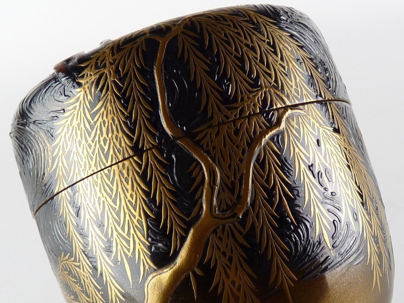 奥野美峰「柳橋蒔絵 大棗」内銀地 堀内宗心書付 在判 共箱