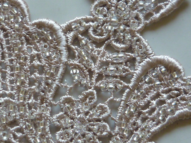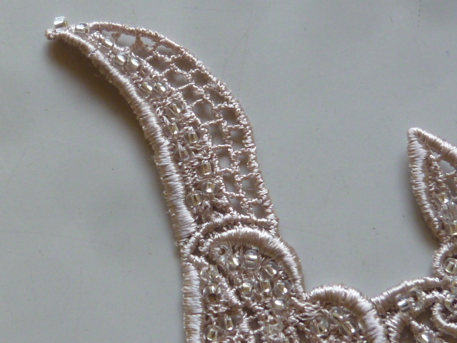 ダイヤとビーズの加工が施されており、とても豪華できれいなレースです。