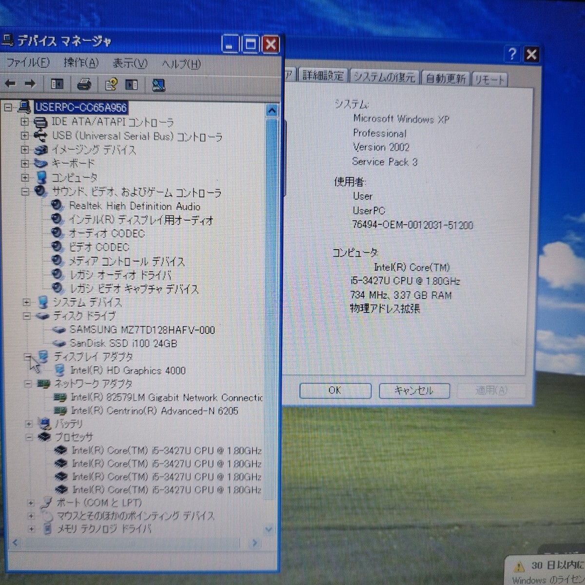 | CPU | Intel Core i5-3427U プロセッサー |
