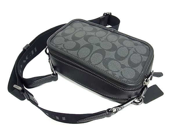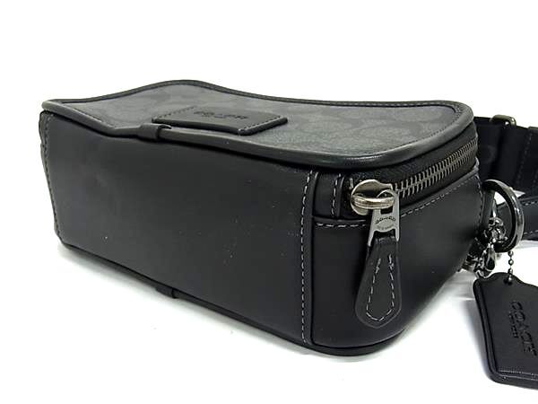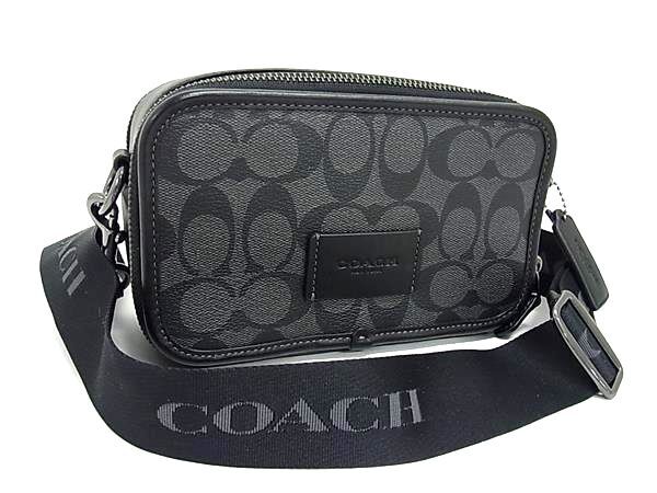 1円 ■美品■ COACH コーチ CM109 シグネチャー PVC×レザー クロスボディ ショルダーバッグ 斜め掛け メンズ ブラック系 FS3898