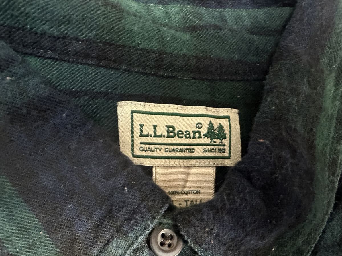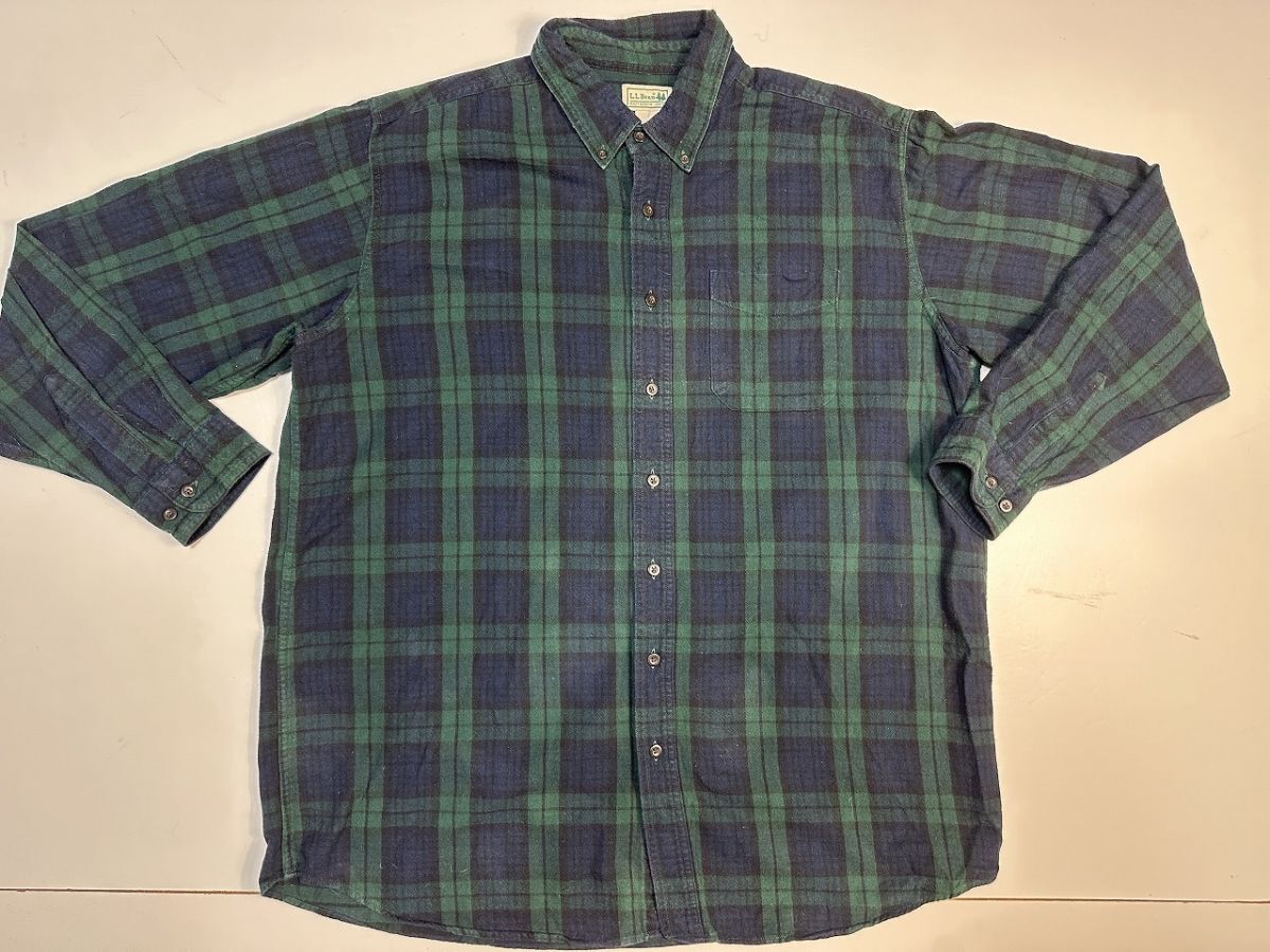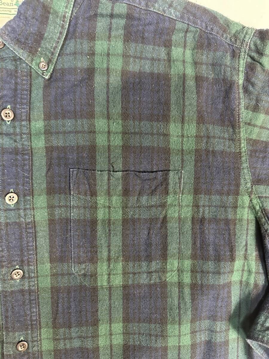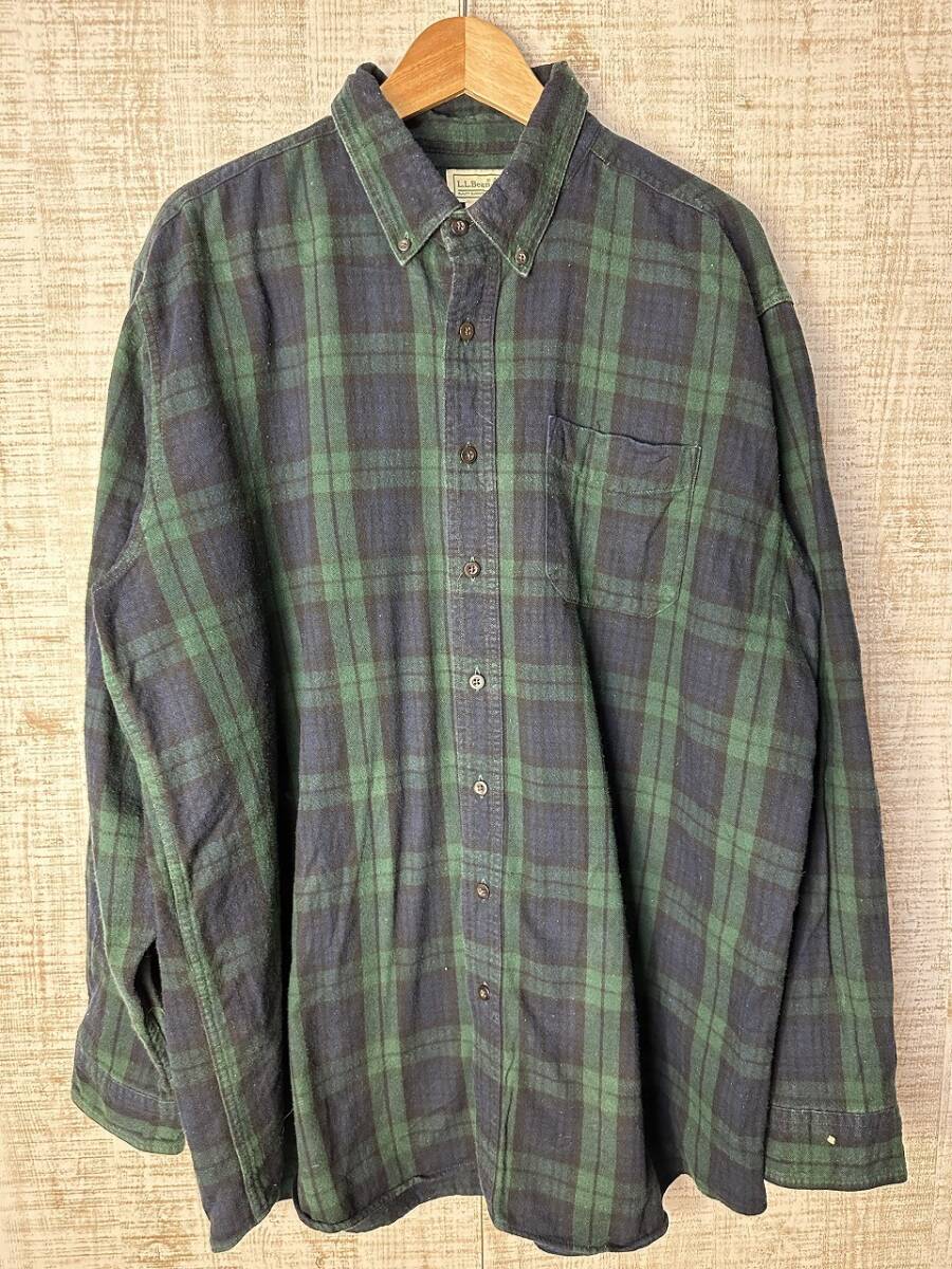 ●US USED ビッグサイズ US古着 L.L.Bean エルエルビーン ネルシャツ チェック柄 グリーン緑ネイビー紺【XL】コットン