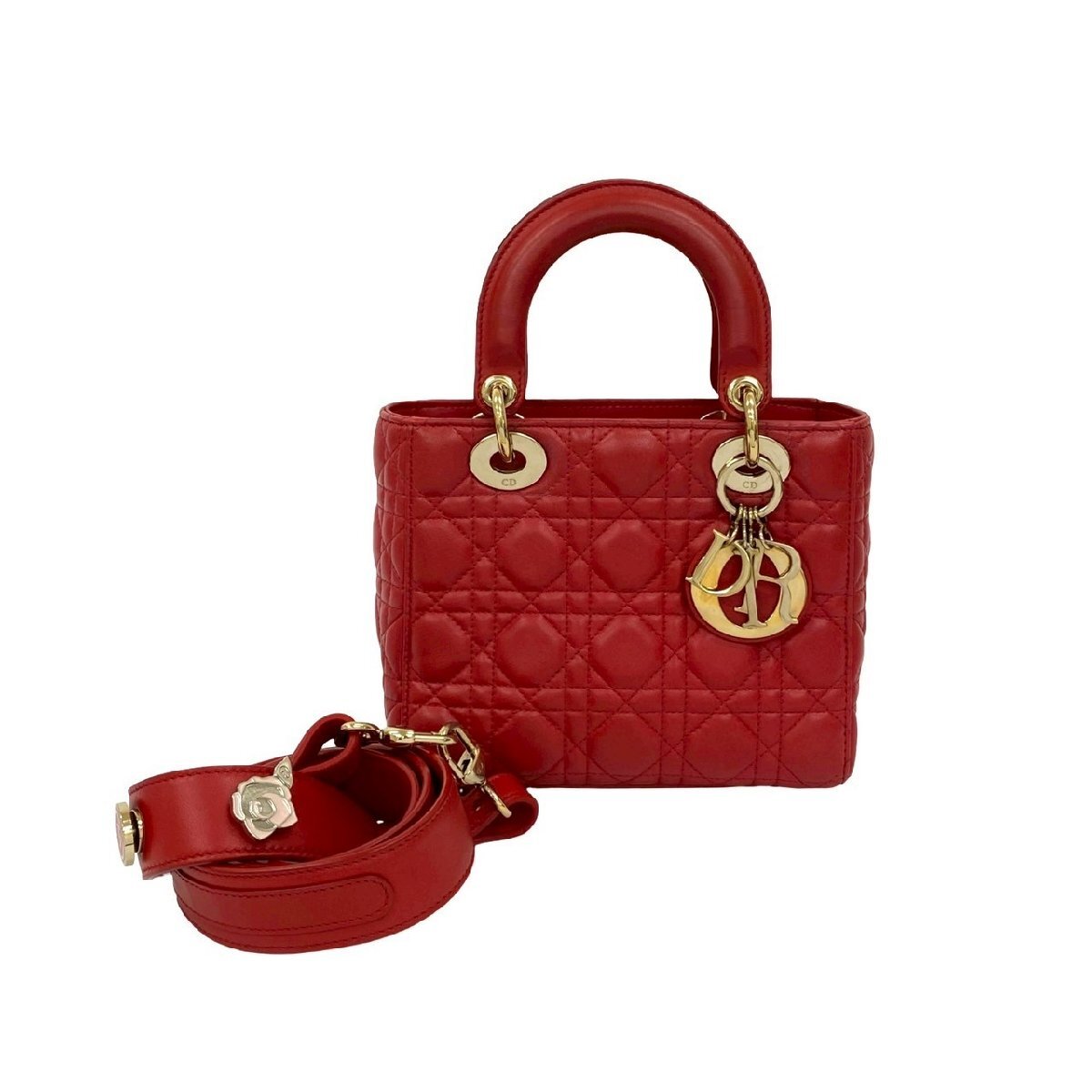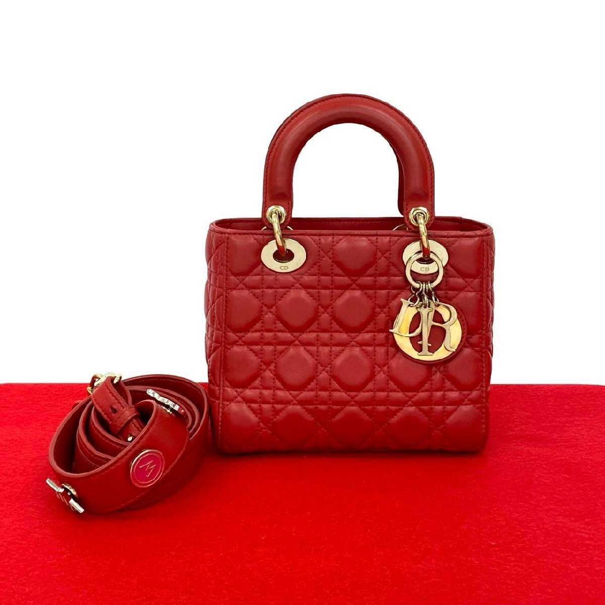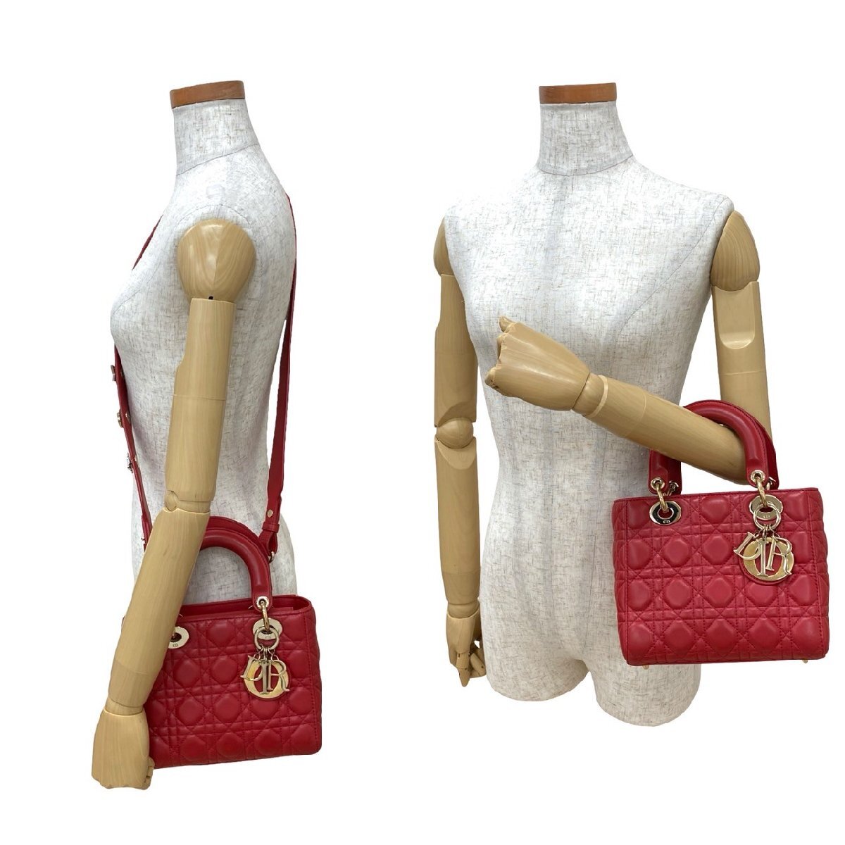 極 美品 Christian Dior クリスチャンディオール マイレディディオール レザー 本革 2way ハンドバッグ ショルダーバッグ レッド 412-9