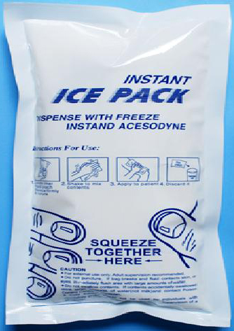 ・袋を強く叩いて、中の水袋が破れてすぐに冷たくなります。