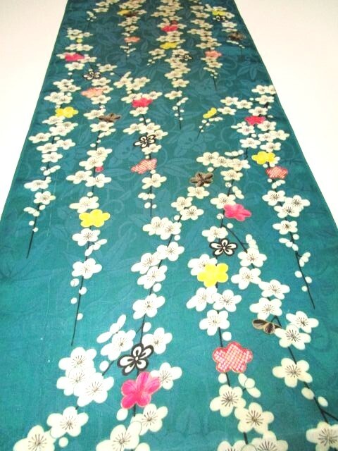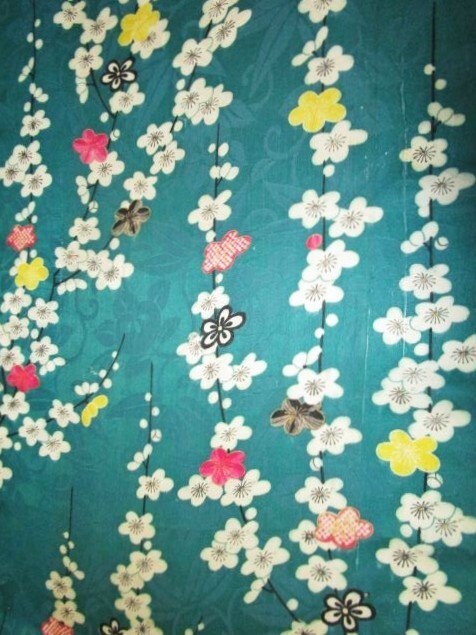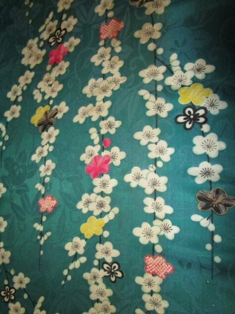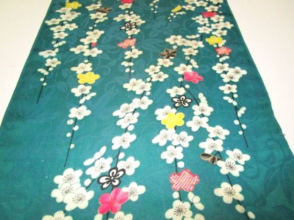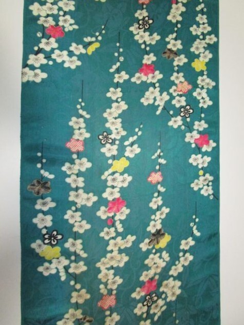 F-47★緑地*梅*枝垂れ梅*交織*古布はぎれ★吊るし雛/市松人形/一閑張り/文化人形