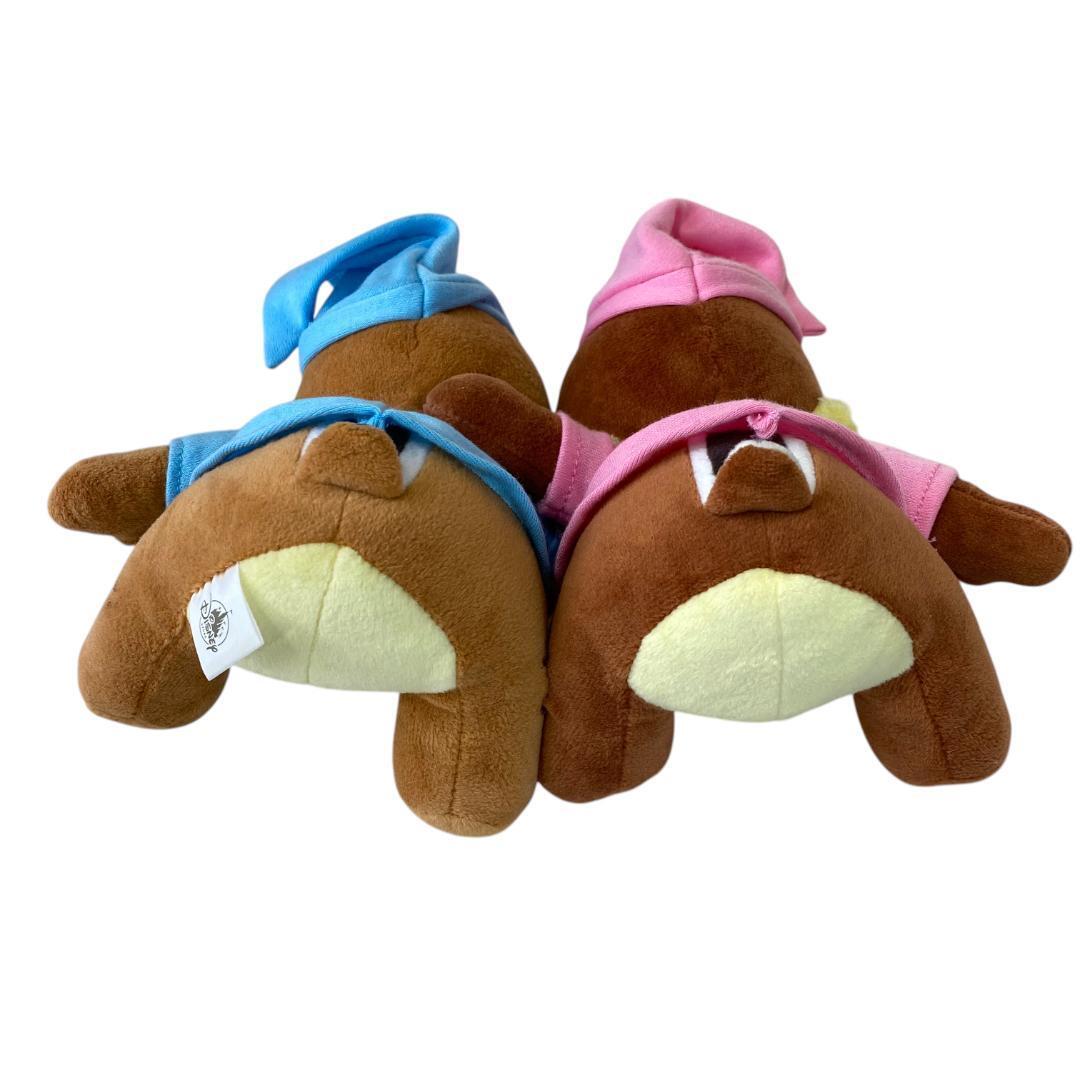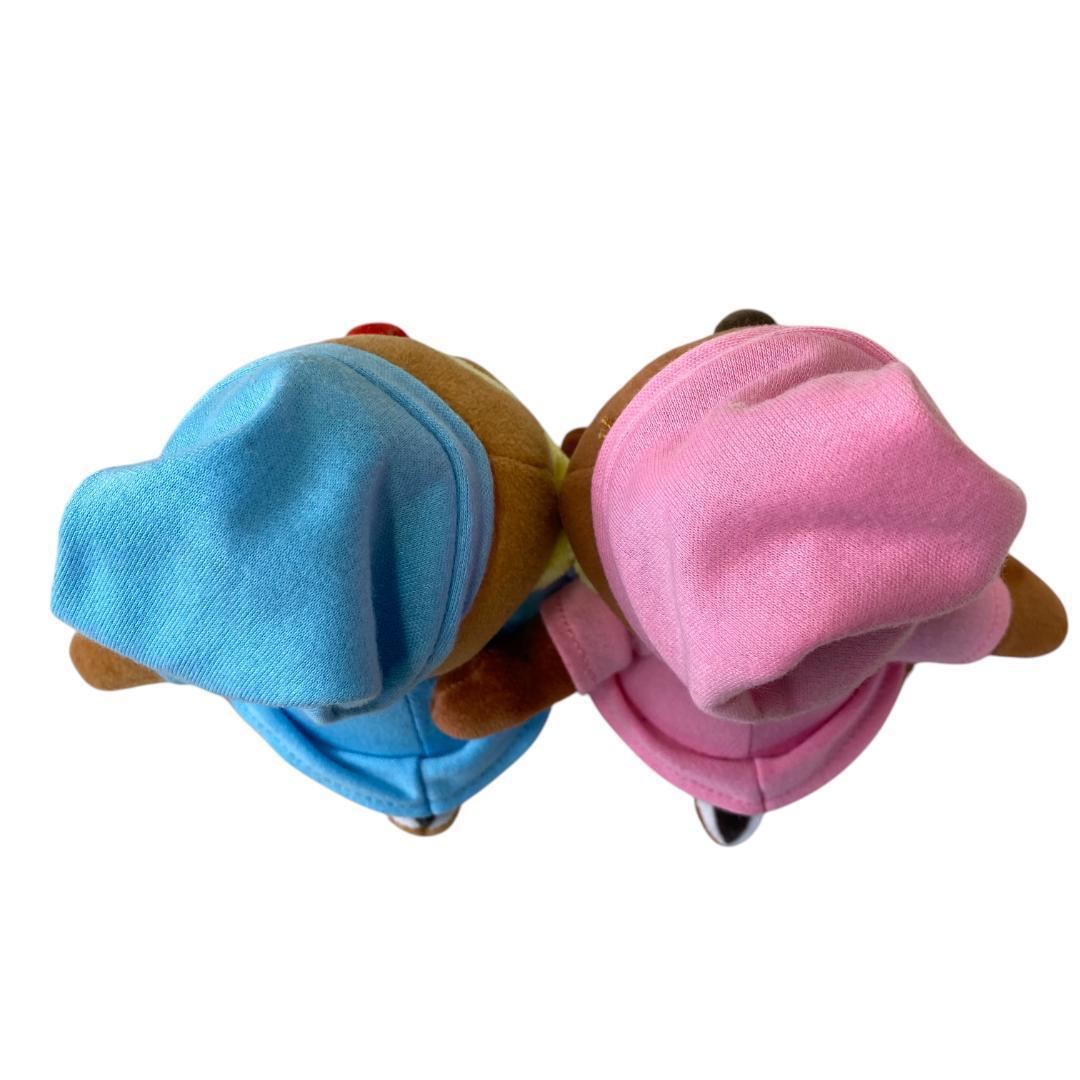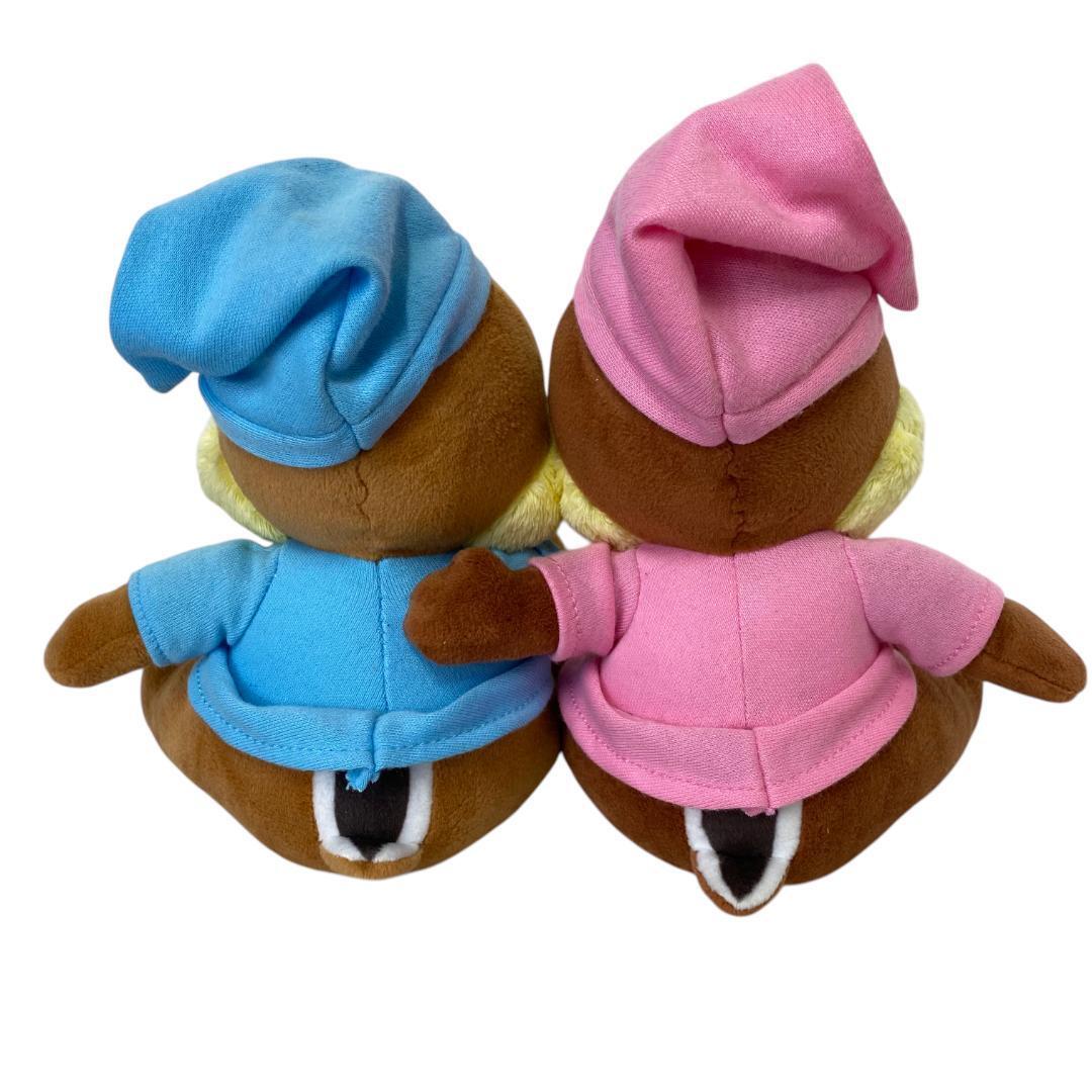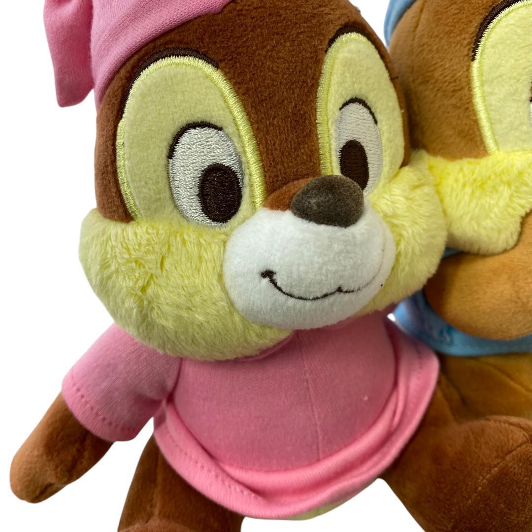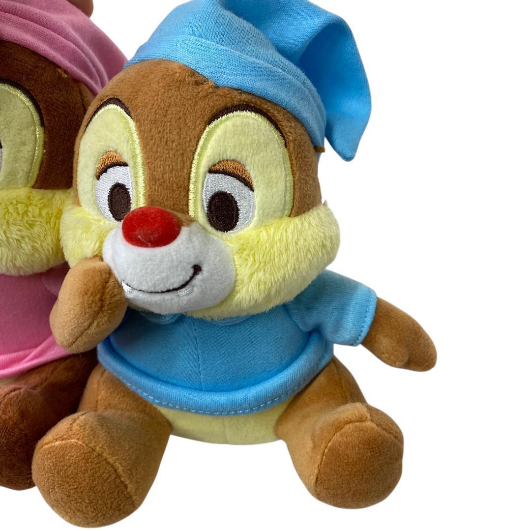 パジャマ姿のチップとデールの可愛いぬいぐるみ、帽子付き。