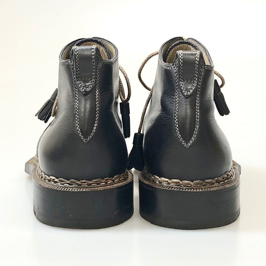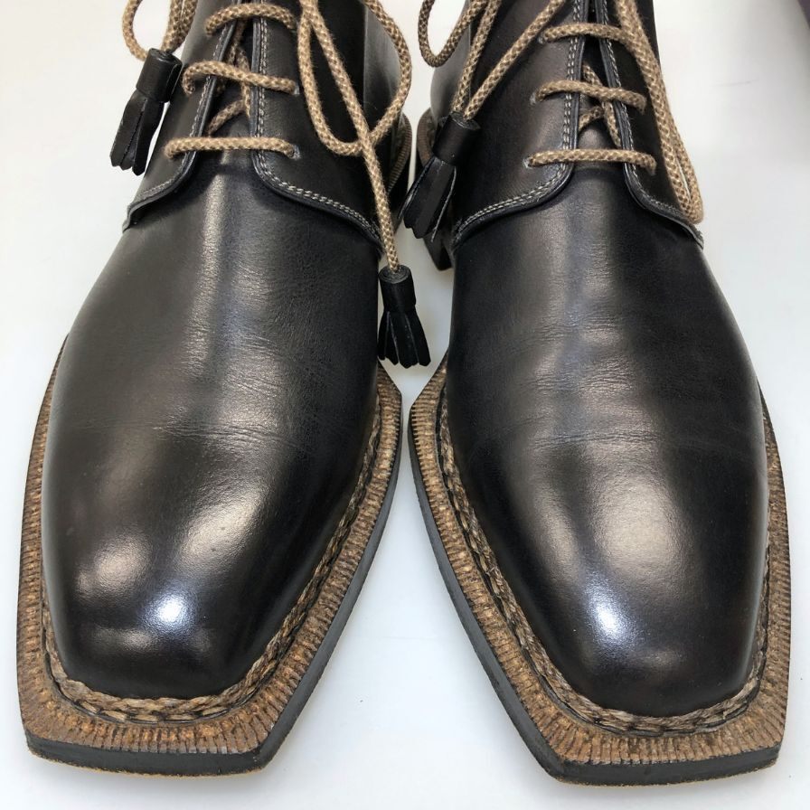 ステファノビ チャッカブーツ スクエアトゥソール タッセルシューレース プレーントゥ メンズ サイズ7 ブラック【AFD2】